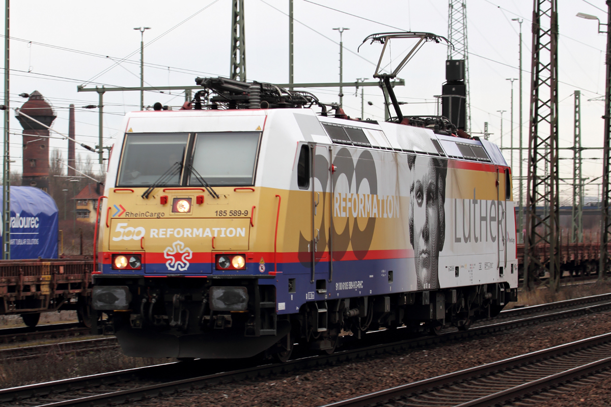 Am Morgen des 05.08.2015 musste die 185 589-9 "MEV" einen kurzen Halt am Bahnsteig in Basel Bad Bf machen, um kurze Zeit darauf weiter in Richtung Basel Bad Rbf/Weil am Rhein zu fahren. Zuvor brachte sie einen Kesselzug in den Rangierbahnhof Muttenz. Tobias Schmidt