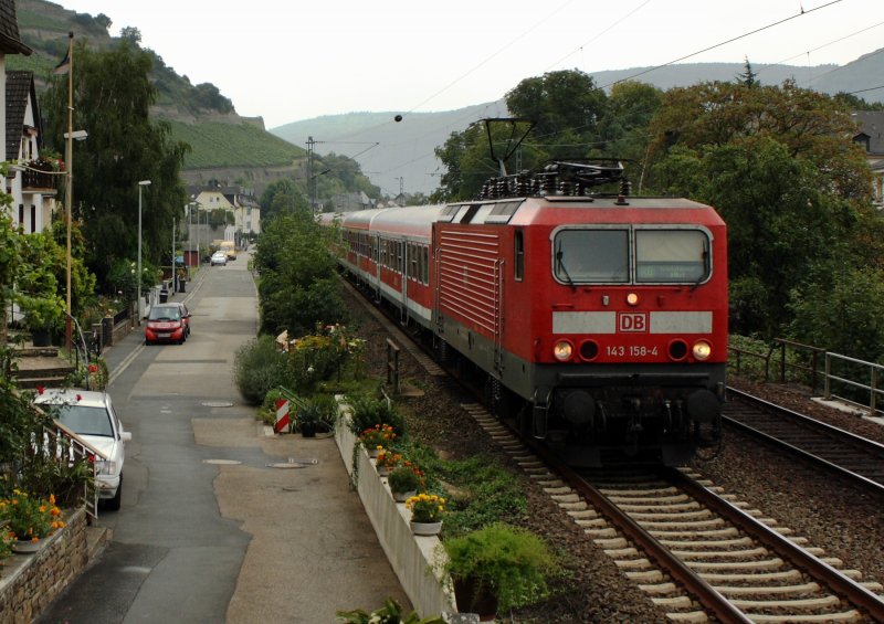 143 657-5 und 644-3 mit der RB 15418Frankfurt(Main)Hbf-Koblenz Hbf) und 143 580-9 mit der RB 15535 (Assmannshausen-Wiesbaden Hbf) in Geisenheim Andreas Hackenjos