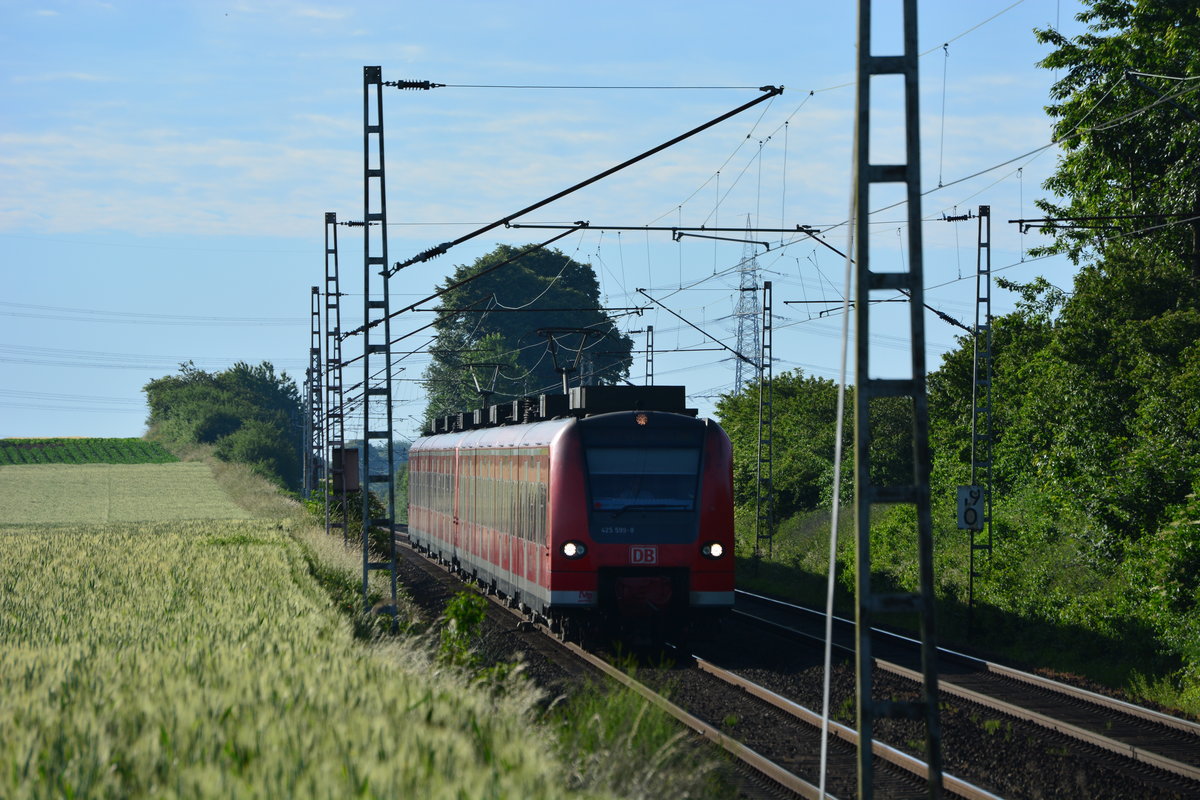 Zwischen zwei Starkregenschauern entstand dieses Foto in Saarbrücken Jägersfreude. Ein lustiger Zufall war, dass gerade 425 130 mit dem Taufnamen Jägersfreude durch "Ihren" Stadtteil rollte. Im Hintergrund der Nordteil des Rbf. Saarbrücken. Schräg Rechts von mir sorgte früher die Grube (Bergwerk) Jägersfreude für regen Güterverkehr. Bahnstrecke 3511 Bingerbrück - Saarbrücken am 20.07.2017 Erhard Pitzius