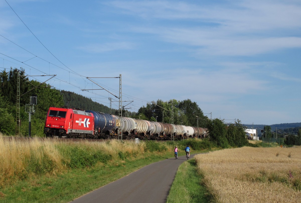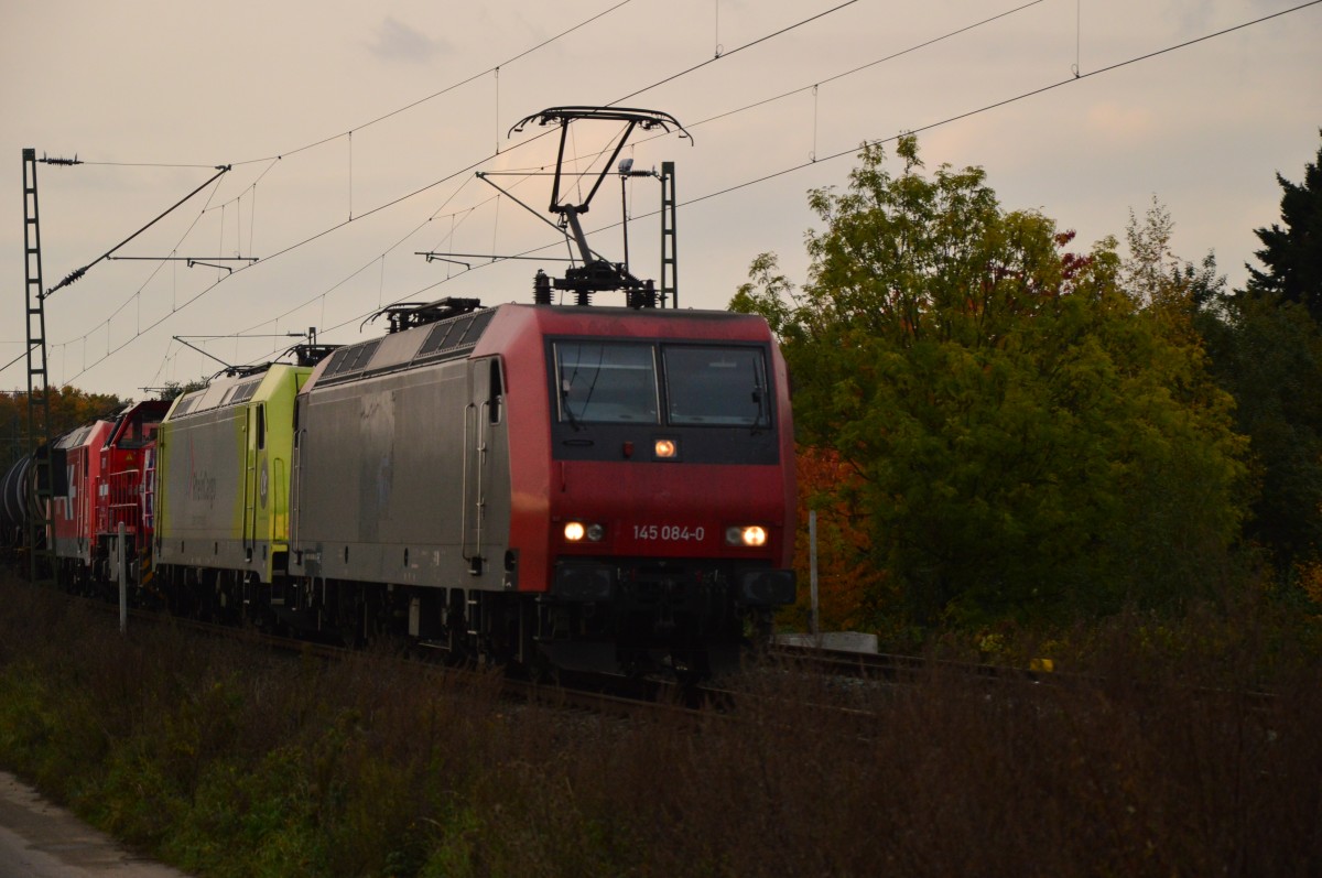 Ein RHC Zug bestehten aus der 145 084-0, die 119 007-2, 271 057-4 und die 185 631-9 und jedemenge Kesselwagen in Richtung Neuss am Fotografen vorbei gefahren. Sonntag 25.10.2015 Andreas Strobel