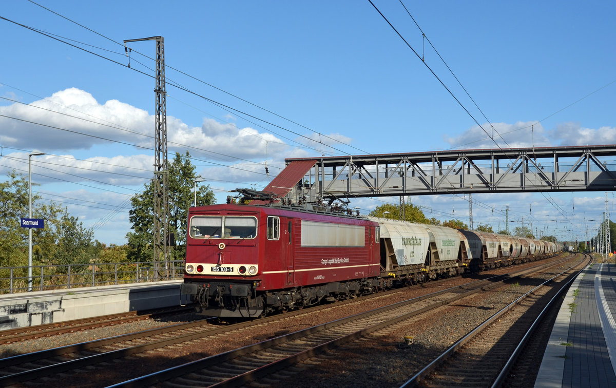 155 103-5 CLR - Cargo Logistik Rail Service GmbH mit einem Getreidezug in Berlin-Schönefeld Flughafen und fuhr weiter in Richtung Glasower Damm. 09.10.2018 Stephan Kemnitz