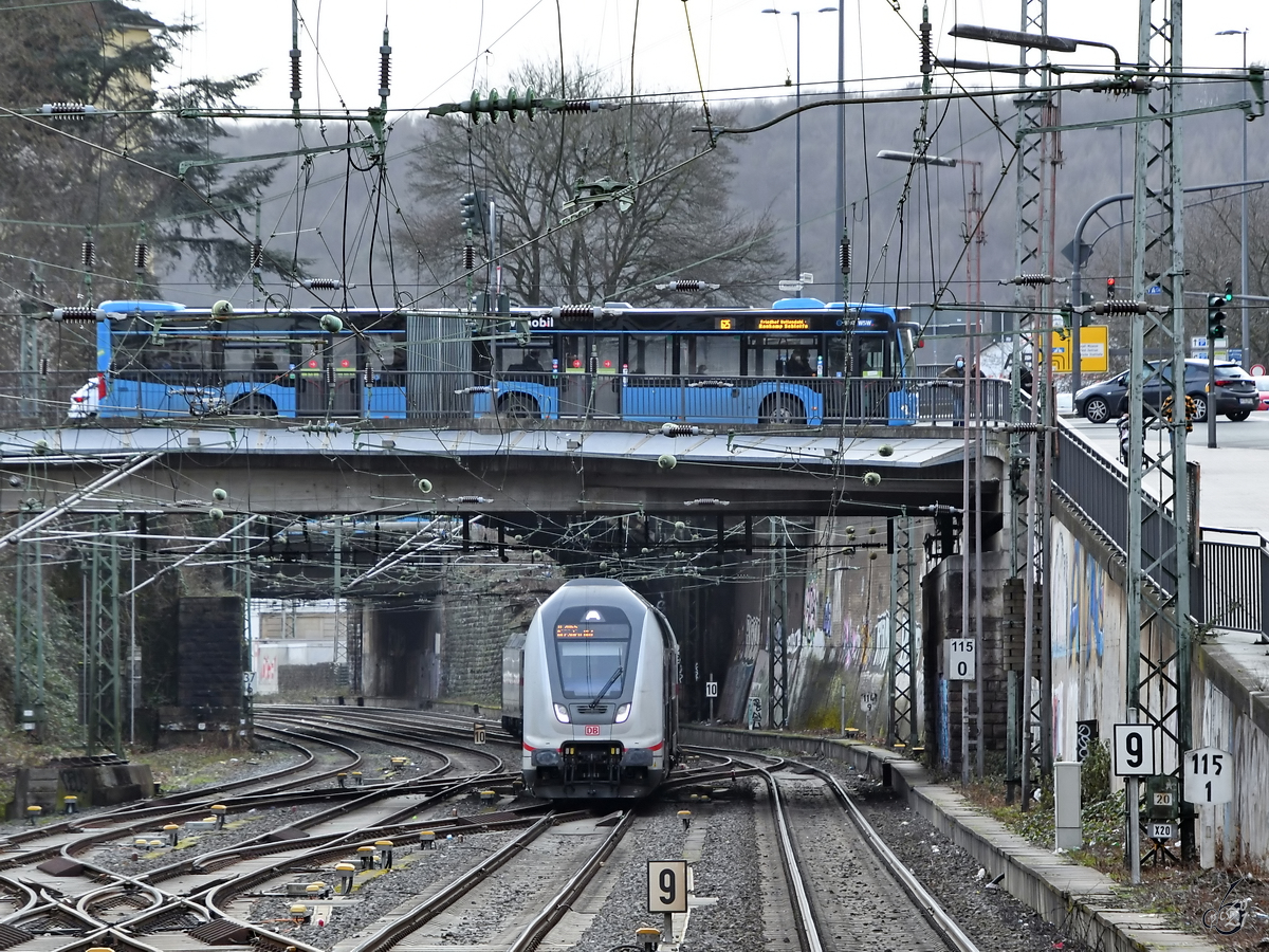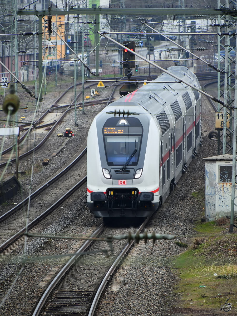 Ein von 146 574-9 geschobener IC 2 mit Ziel Dresden Hbf ist hier Mitte März 2021 bei der Durchfahrt in Wuppertal-Unterbarmen zu sehen. Christian Bremer