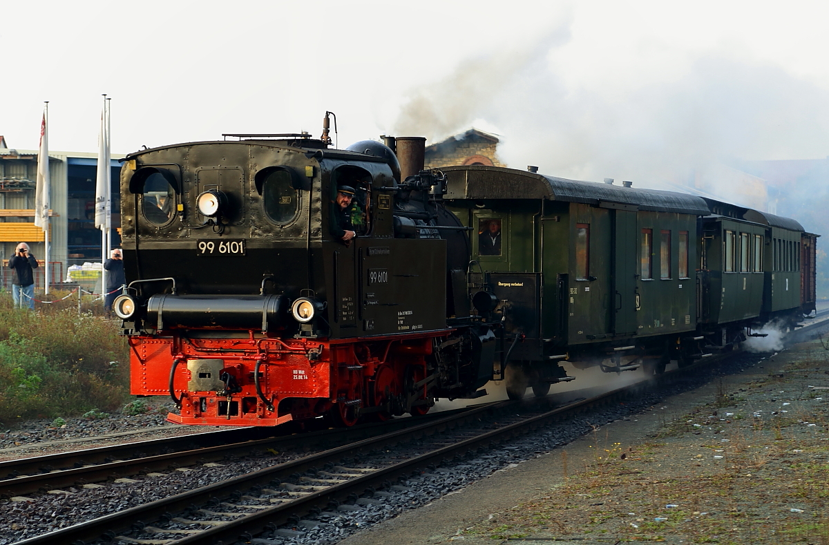 Lokportrait von 99 6101, hier vor einem Sonderzug der IG HSB nach "Eisfelder Talmühle", aufgenommen am 19.10.2013 im Bahnhof Drei Annen Hohne. Michael Edelmann