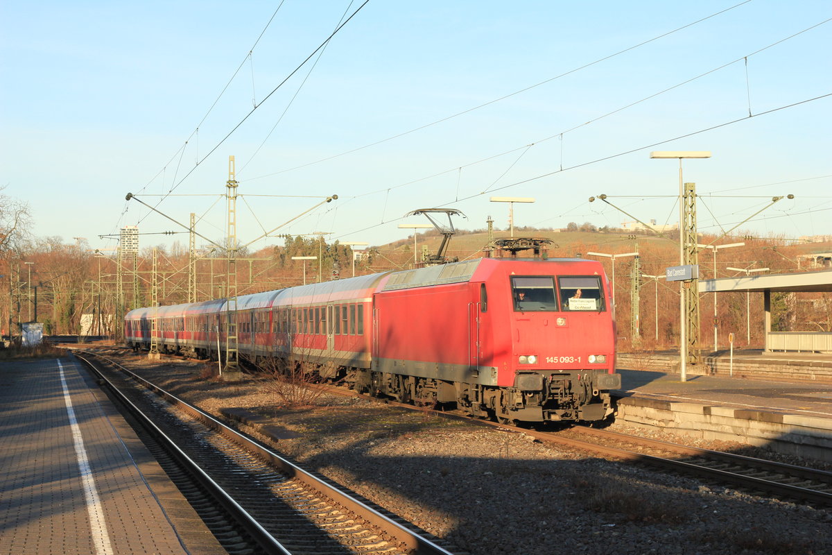 114 017 mit RE Nürnberg-Stuttgart am 16.02.2017 bei der Einfahrt in Fornsbach. Die Aufnahme entstand aus dem kreuzenden RE Stuttgart-Hessental. Fluffy