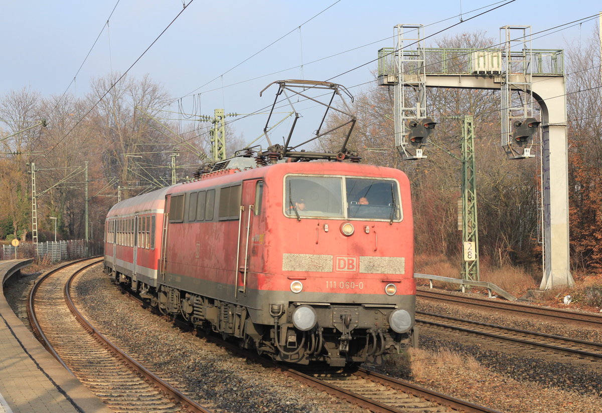 Ordentlich ausgeblichen ist 111 060, welche aktuell noch ihr Gnadebrot für Go-Ahead verdient. Hier durchfährt sie mit RE 90 aus Nürnberg den Haltepunkt Nürnberger Straße am 22.01.2020. Fluffy