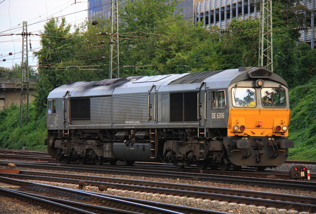 Die Class 66 DE6307 von DLC Railways kommt als Lokzug aus Montzen-Gare(B) und fährt in Aachen-West ein in der Abendsonne am 4.11.2012. Stefan Hochstetter