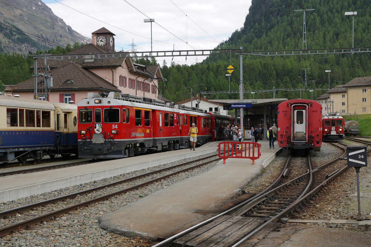 Bahnhofsidylle Pontresina wie in alten Zeiten am 9. Juni 2018.