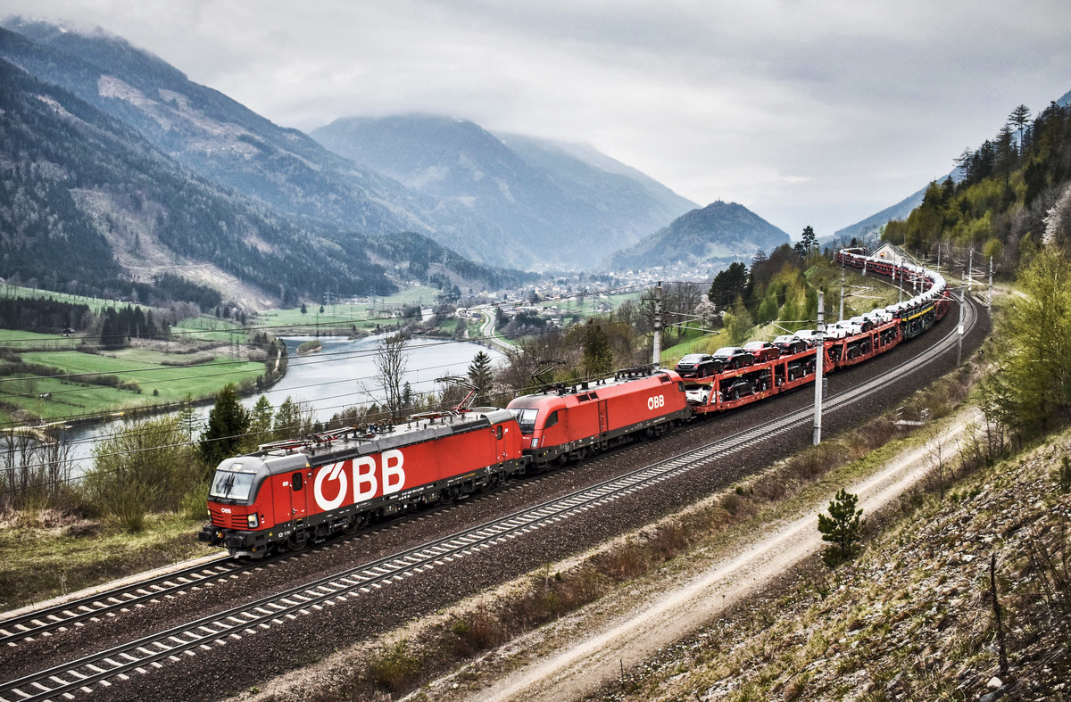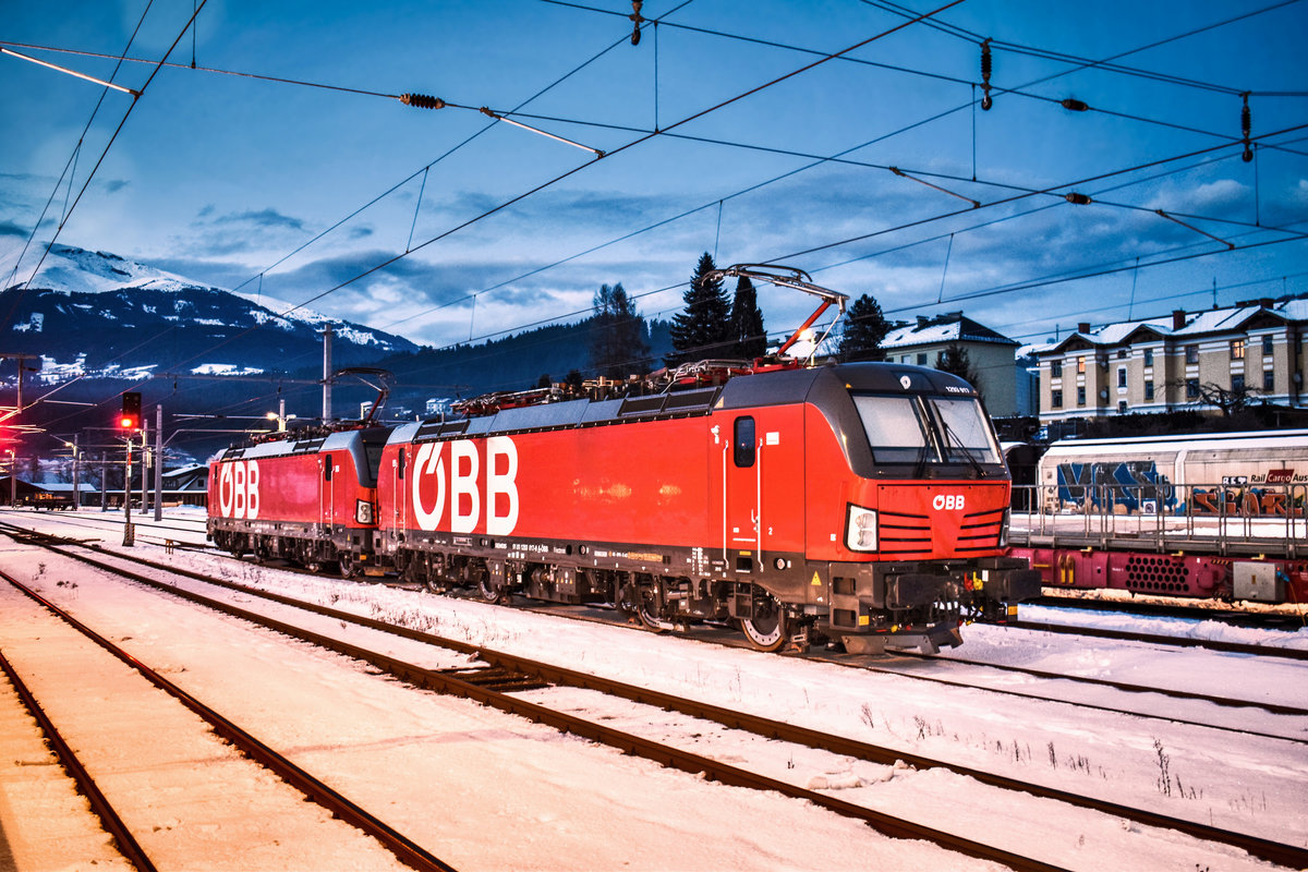 Hier warten soeben 1293 217-0 und 1293 001-4, im Bahnhof Spittal-Millstättersee, auf den nächsten Einsatz.