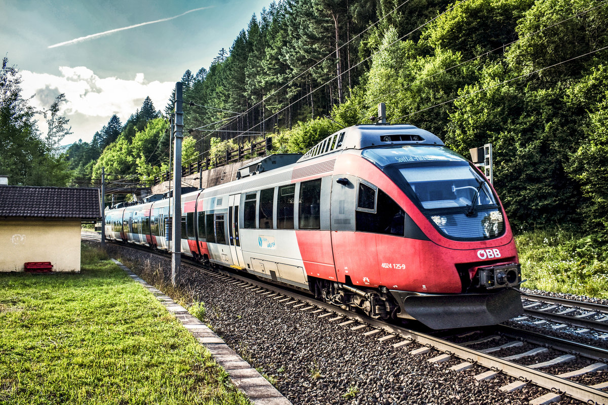 4024 125-9 fährt nach einem kurzen Halt in Oberfalkenstein, weiter in Richtung Spittal.