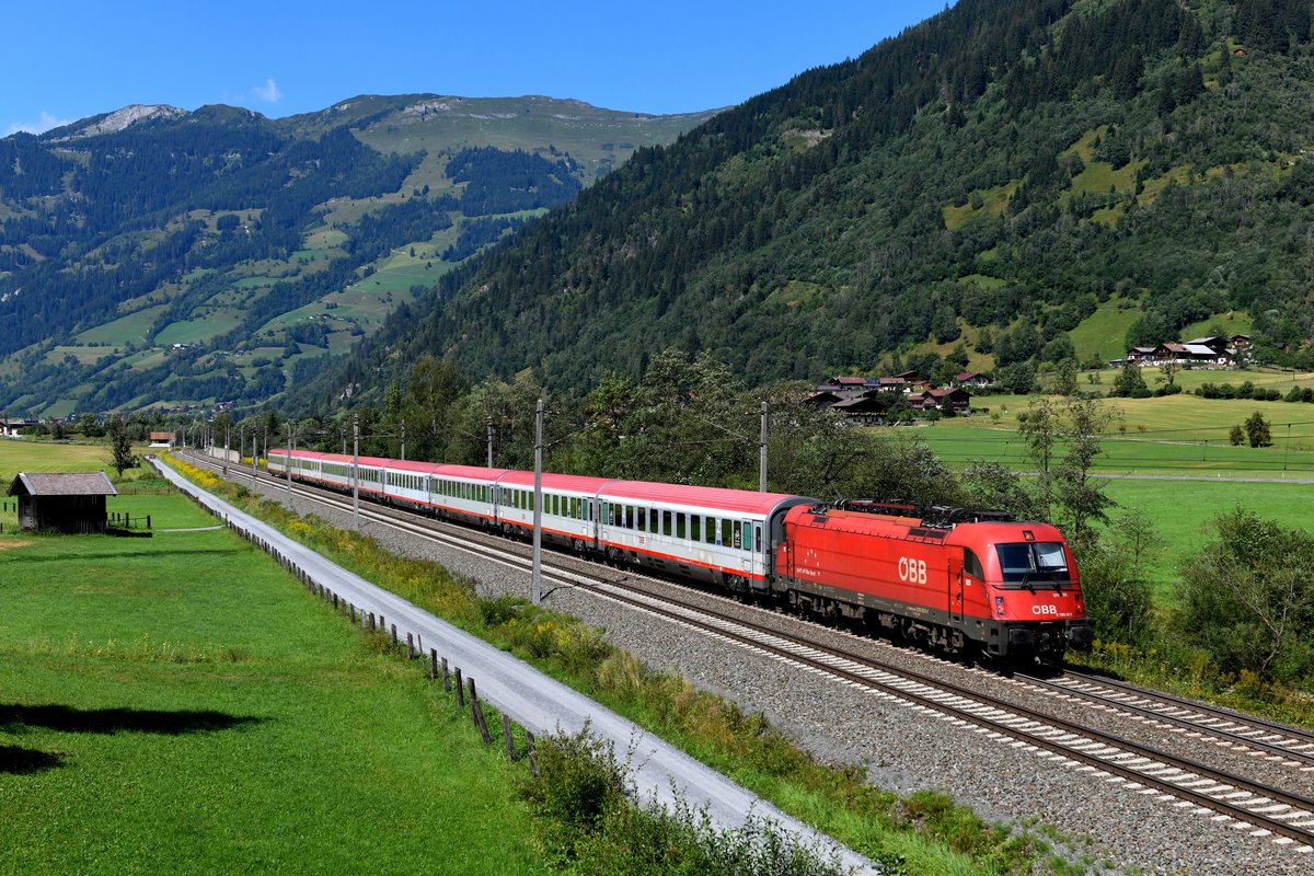 Wenige Augenblicke nach dem umgeleiteten EC 87 kam der EC 113 nach Klagenfurt an meinem Fotostandpunkt bei Luggau im Gasteinertal durchgefahren. Es führte die im Neulack befindliche 1116.194. Christoph Schneider