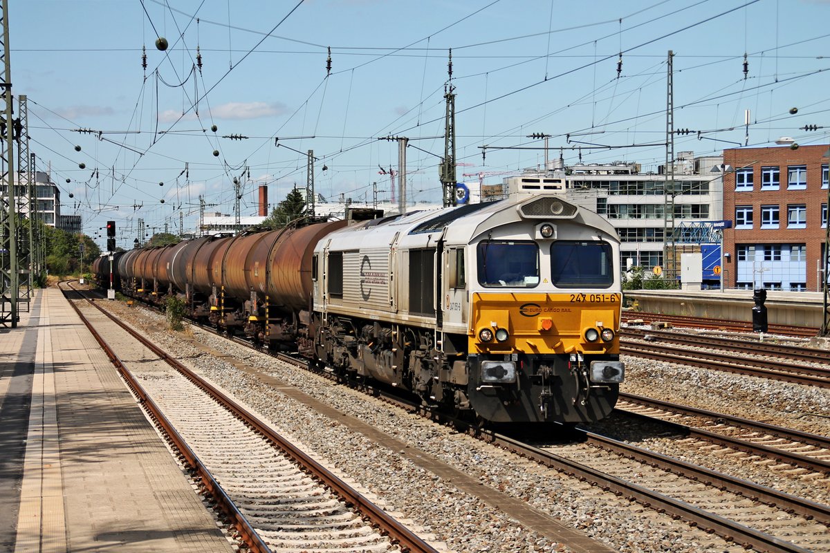 Am 25.08.2015 fuhr 247 057-3 (266 457-1) mit einem langen und schweren Kesselwagenzug aus Richtung Ostbahnhof durch München Heimeranplatz gen München Laim. Tobias Schmidt