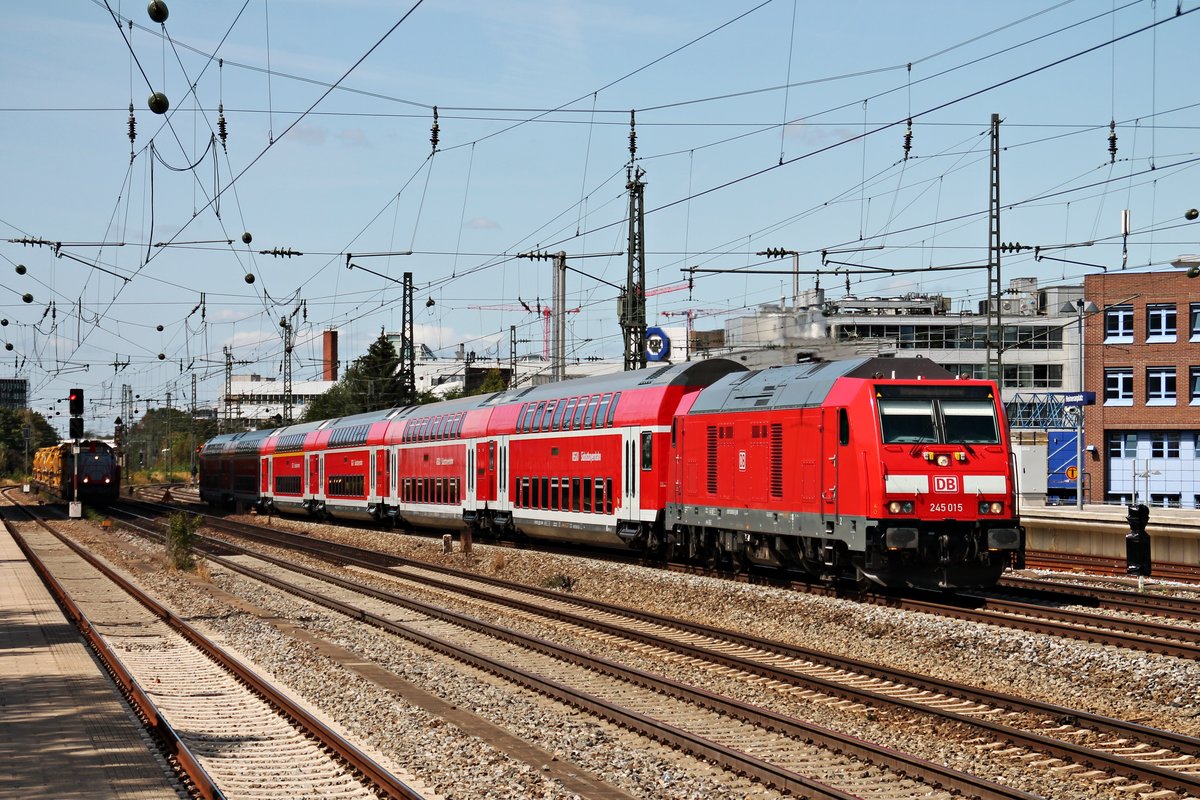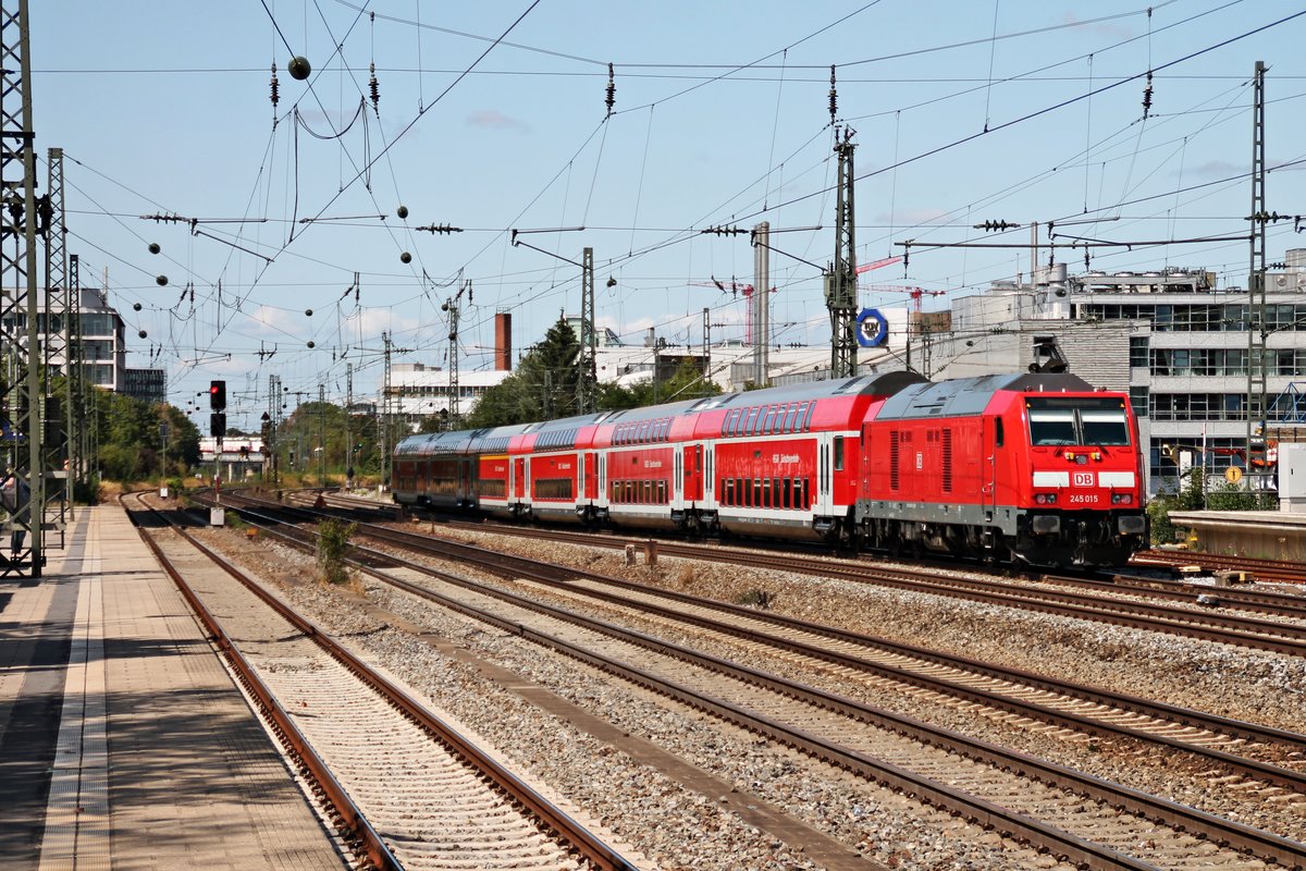 Nachschuss am 25.08.2015 auf 245 015, als sie ihren RE (Mühldorf - München Hbf) durch München Heimeranplatz in Richtung Zielbahnhof schiebte. Tobias Schmidt