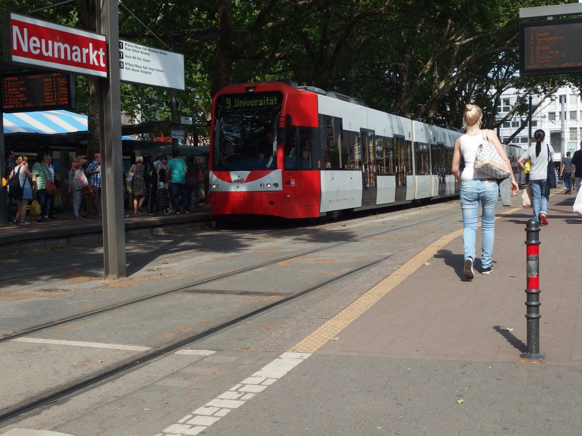 Am 12.6.13 ist TW 5131 mit einem weiteren baugleichen Fahrzeug unterwegs als Linie 4 Richtung Bocklemünd. Aufgenommen an der Haltestelle "Grünstr." Johannes Schwarz