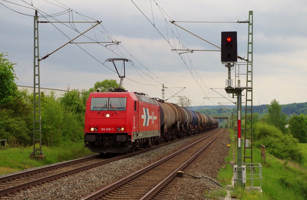 185 618-6 RBSAF - RBS Asset Finance Europe Limited für RheinCargo GmbH & Co. KG mit einem Kesselzug "Dieselkraftstoff oder Gasöl oder Heizöl (leicht)", bei der Durchfahrt in Berlin-Schönefeld Flughafen und fuhr in Richtung Genshagener Heide weiter. 22.04.2014 Stephan Kemnitz
