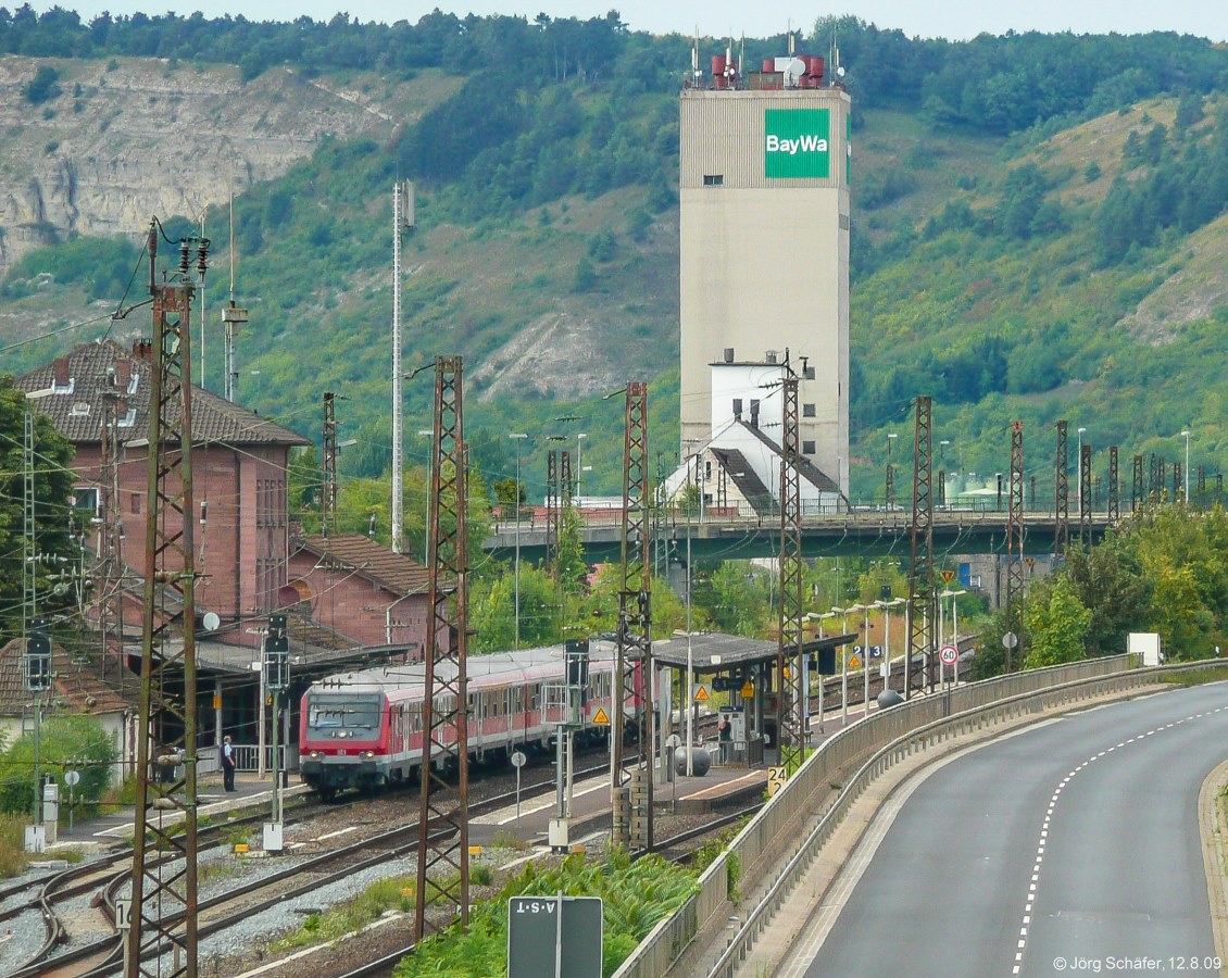 Eine RB nach Würzburg fuhr am 12.8.09 in Retzbach-Zellingen auf Gleis 3. Der Lokführer hatte in Jossa vergessen, das Zielschild zu ändern. Jörg Schäfer