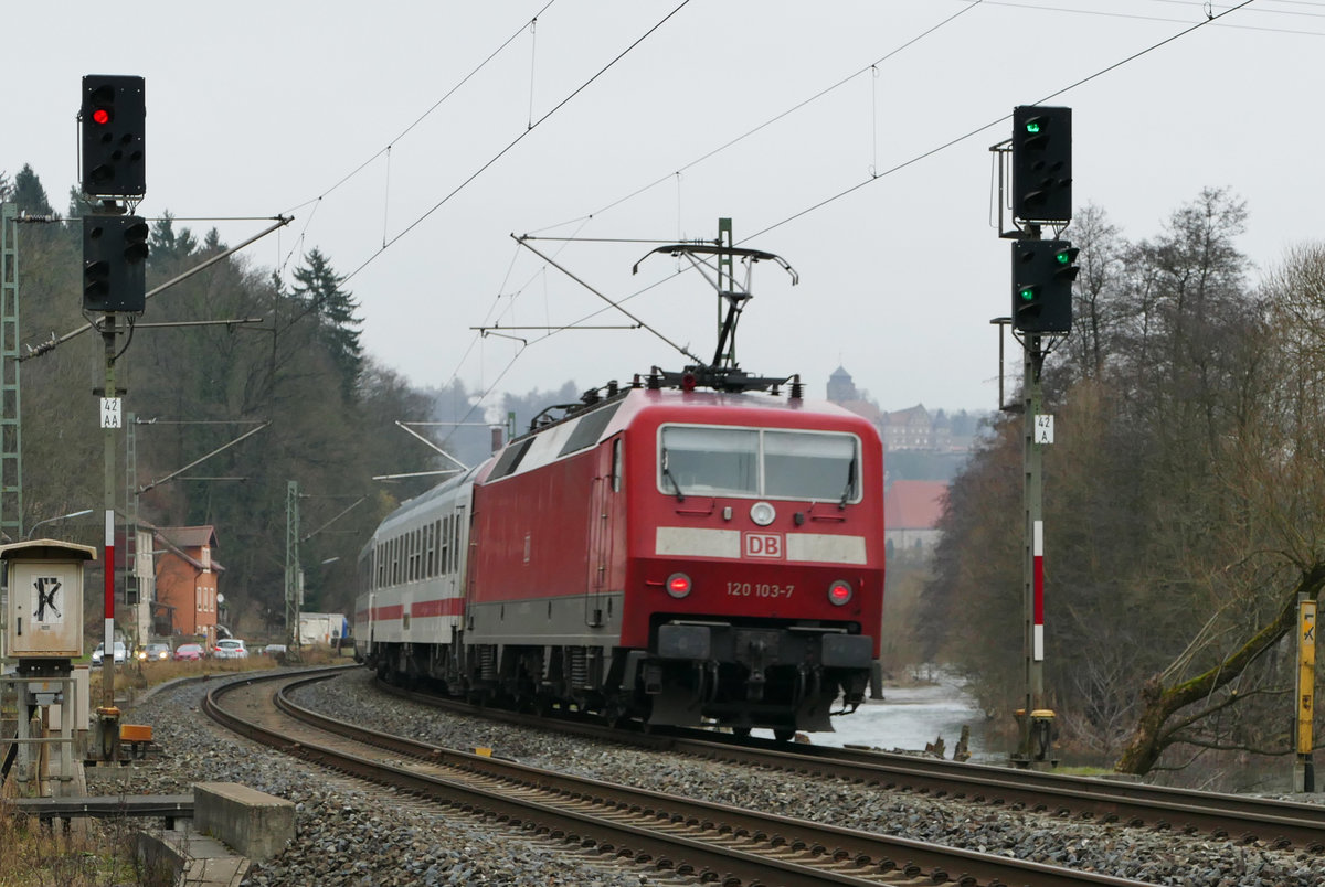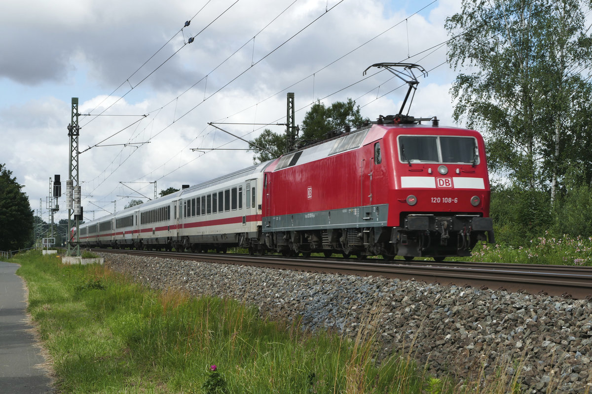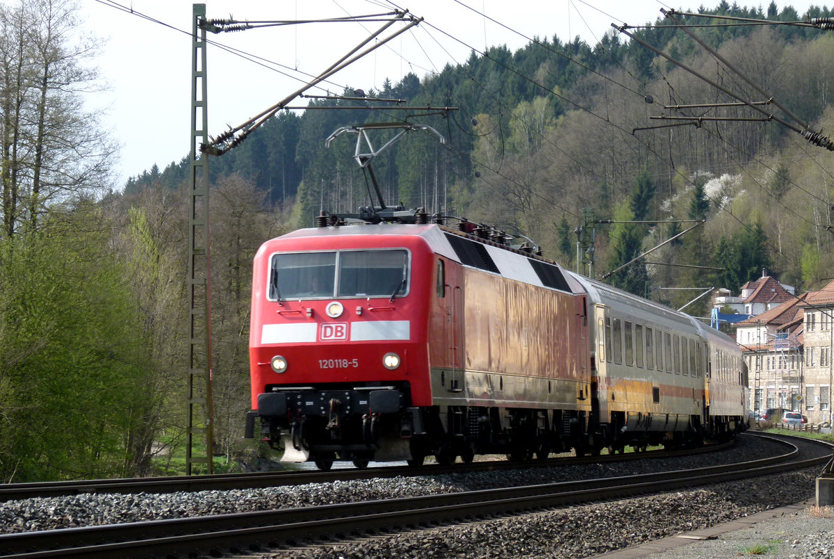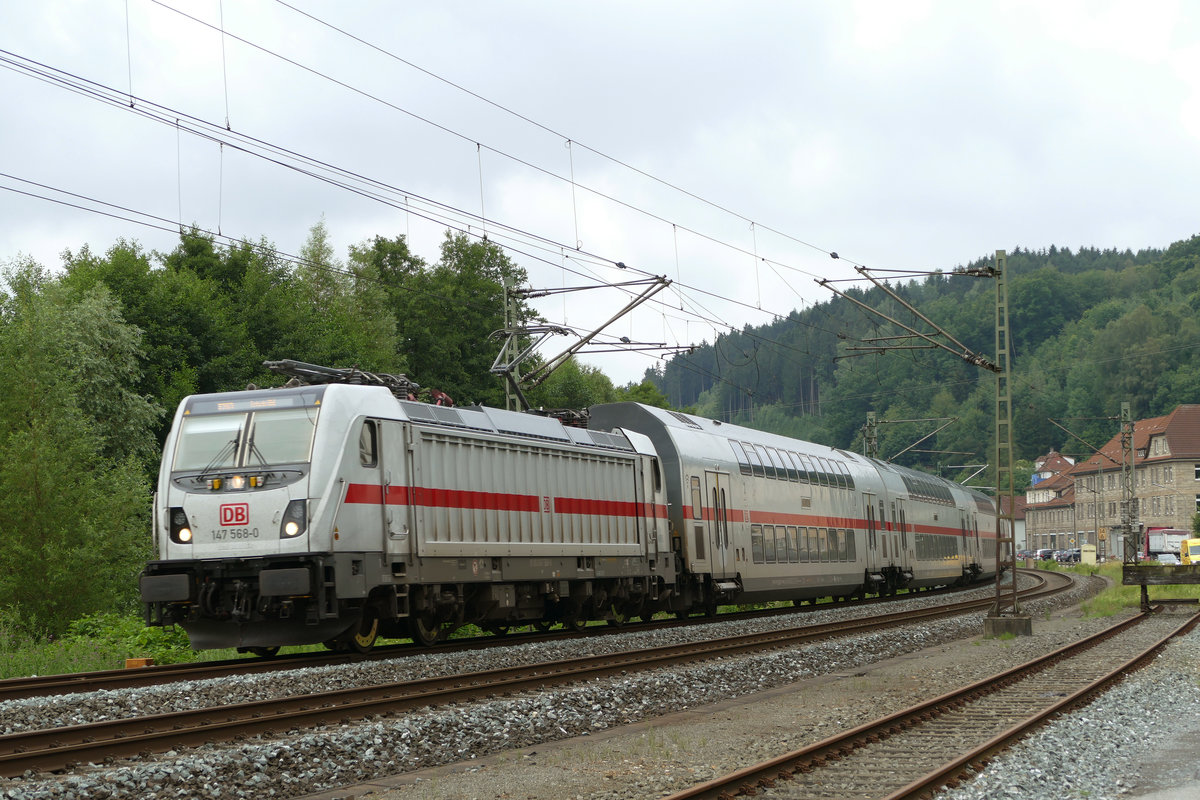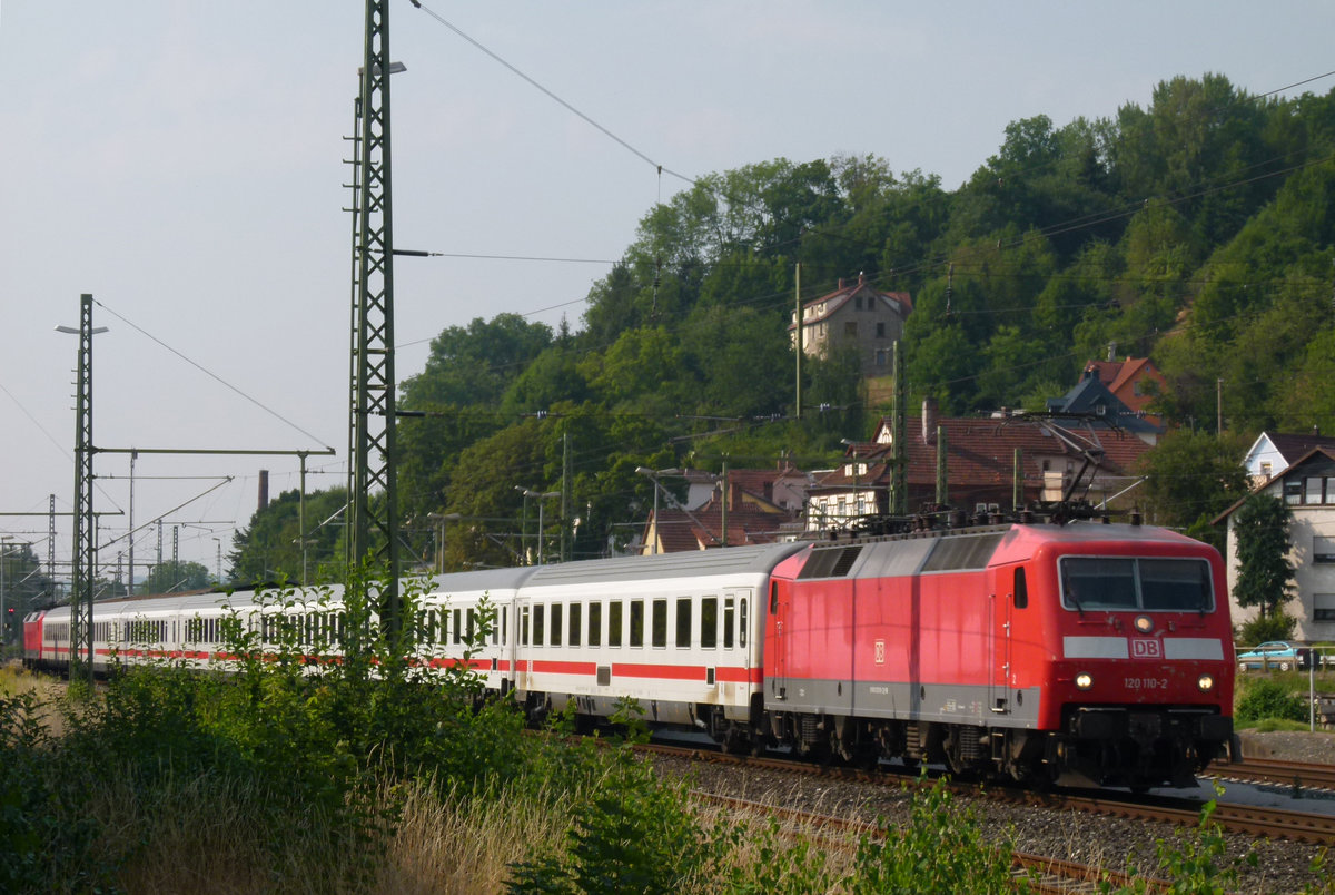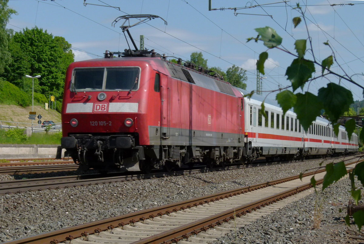 30. Juli 2020, Auf der (Auto-)fahrt nach Pressig überholte ich im Bereich des Bahnhofs Kronach heute diesen langsam durchfahrenden Lokzug. Eine 101 schleppt fünf 120er, die 157 bildet den Schluss. Glücklicherweise gibt es hinter der Stadtgrenze einen abbiegenden Feldweg, an dem ich halten und diese Aufnahme "schießen" konnte. Frage an die Kollegen: Hat jemand die Fuhre besser fotografieren können? - Weiß jemand die Loknummern und das Ziel der Fahrt? Jürgen Krause