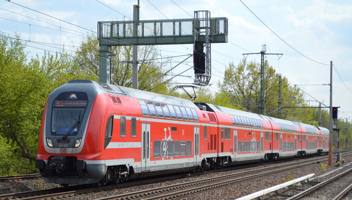 DB Regio AG - Region Nordost mit "445 006" (NVR: "91 80 0445 006-3 D-DB.....") als RE5 am Rande des Bahnhof Elsterwerda pausierend am 21.06.22 Lothar Stöckmann