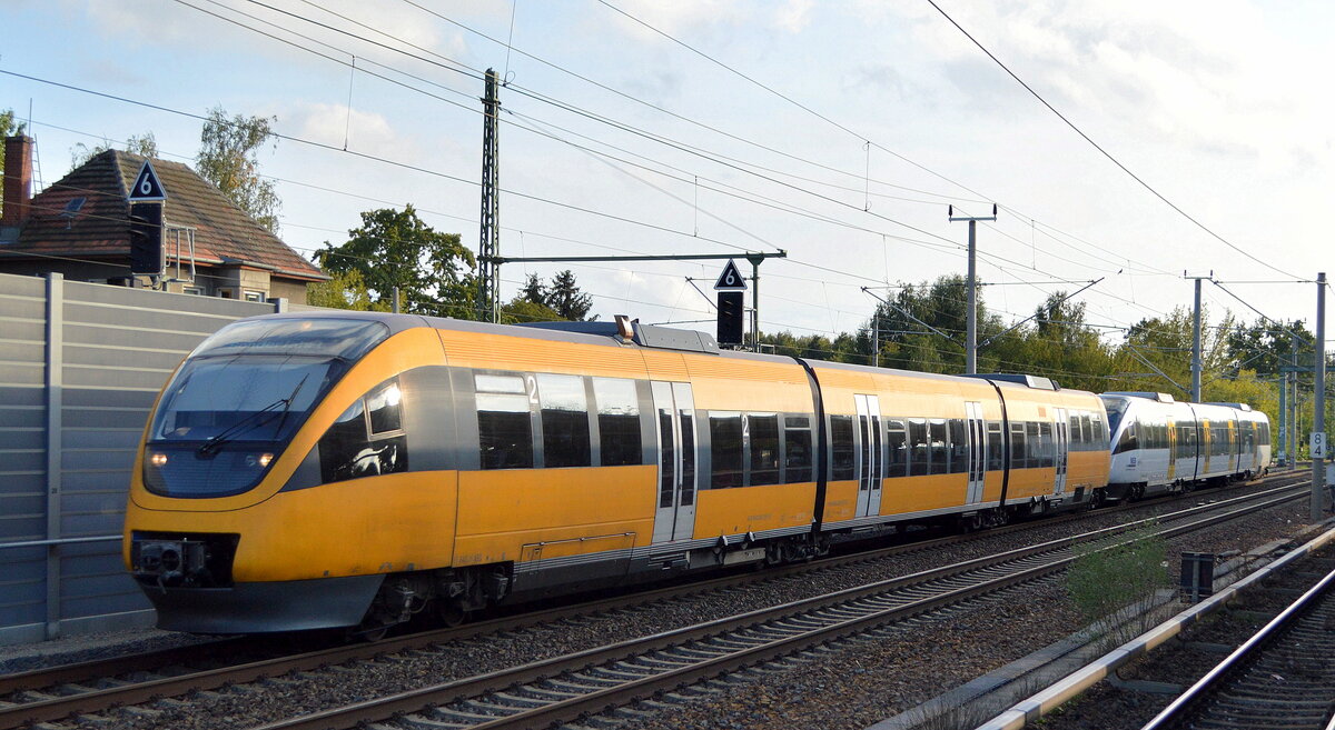 NEB mit dem PEG Talent "VT 643.06 ABD/BD" (NVR: "95 80 0643 863-3 D-PEG....") + NEB Talent "VT 643.09" als RB51 nach Oranienburg am 13.09.22 Berlin Blankenburg. Lothar Stöckmann