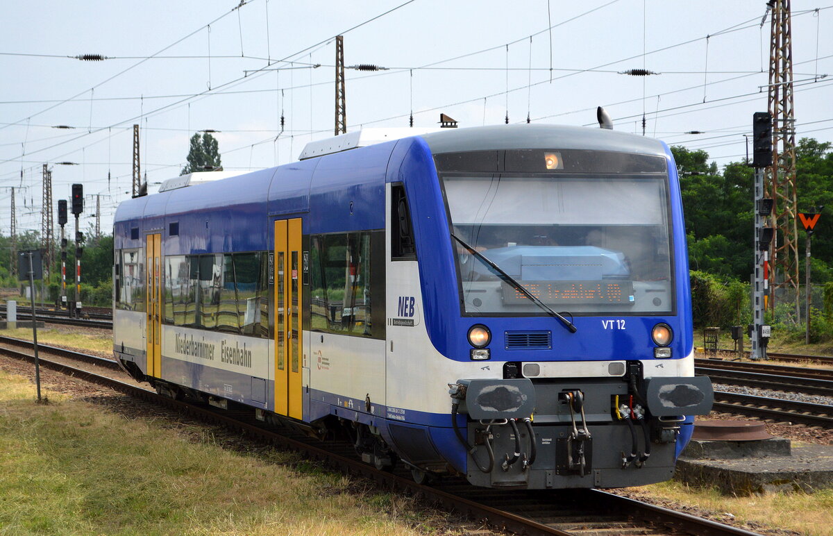 Prignitzer Eisenbahn mit der Linie RB34 nach Rathenow mit den zwei Talent-Triebzügen (95 80 0643 362-6 D-PEG + 95 80 0643 363-4 D-PEG) abfahrbereit im Bahnhof Stendal, 15.06.22 Lothar Stöckmann