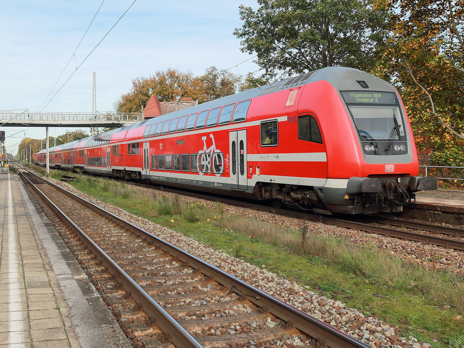 Geschoben von 112 182, überquert gleich ein RE5 nach Finsterwalde den personenbedienten BÜ Oertelufer, der bald (Stand heute in 2028) Geschichte sein soll.