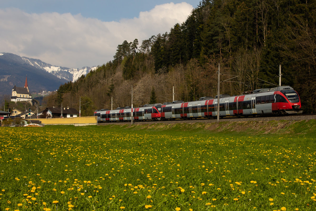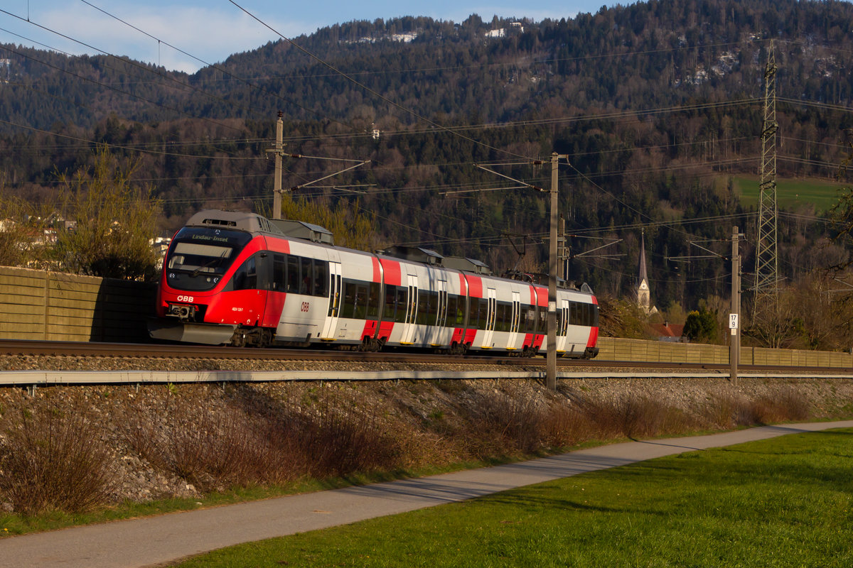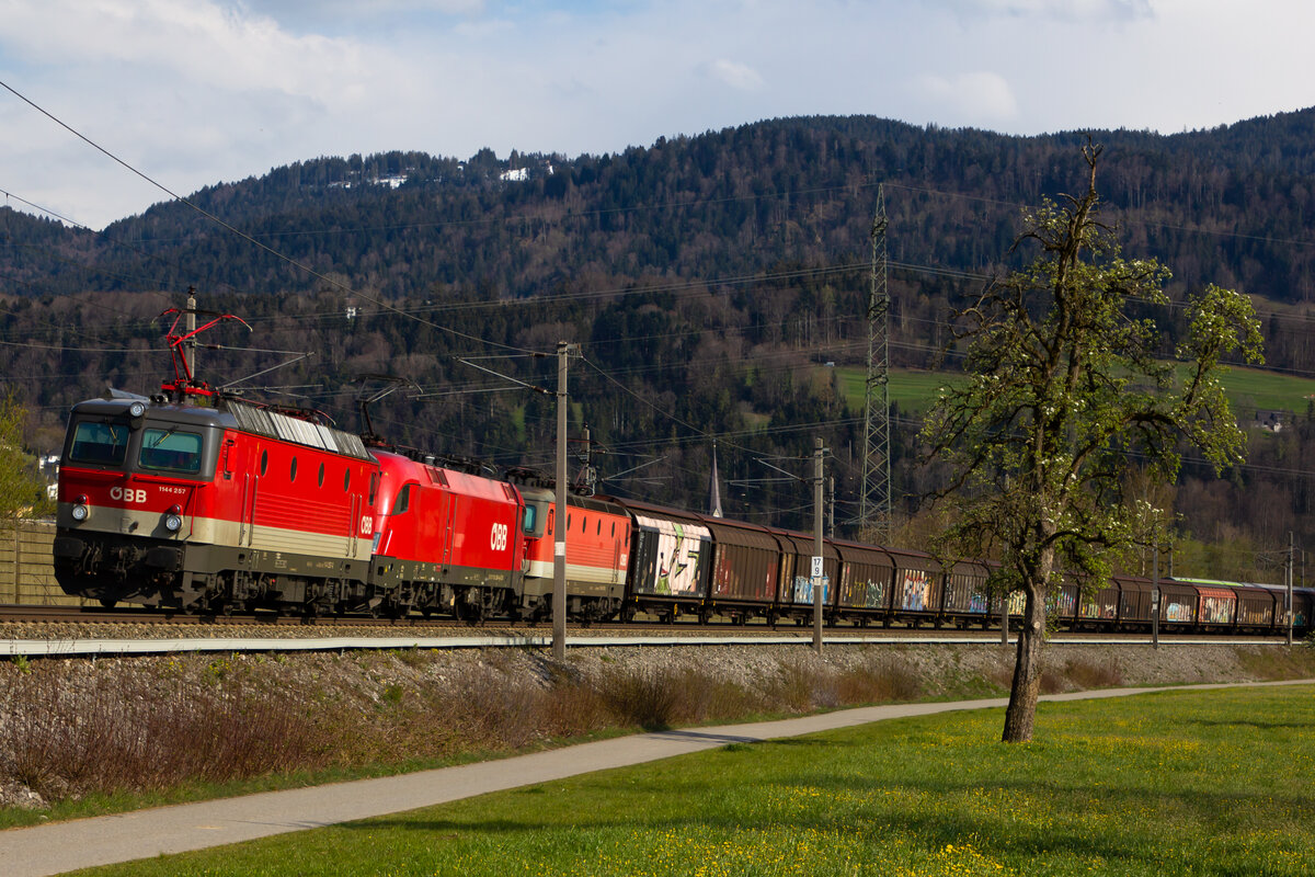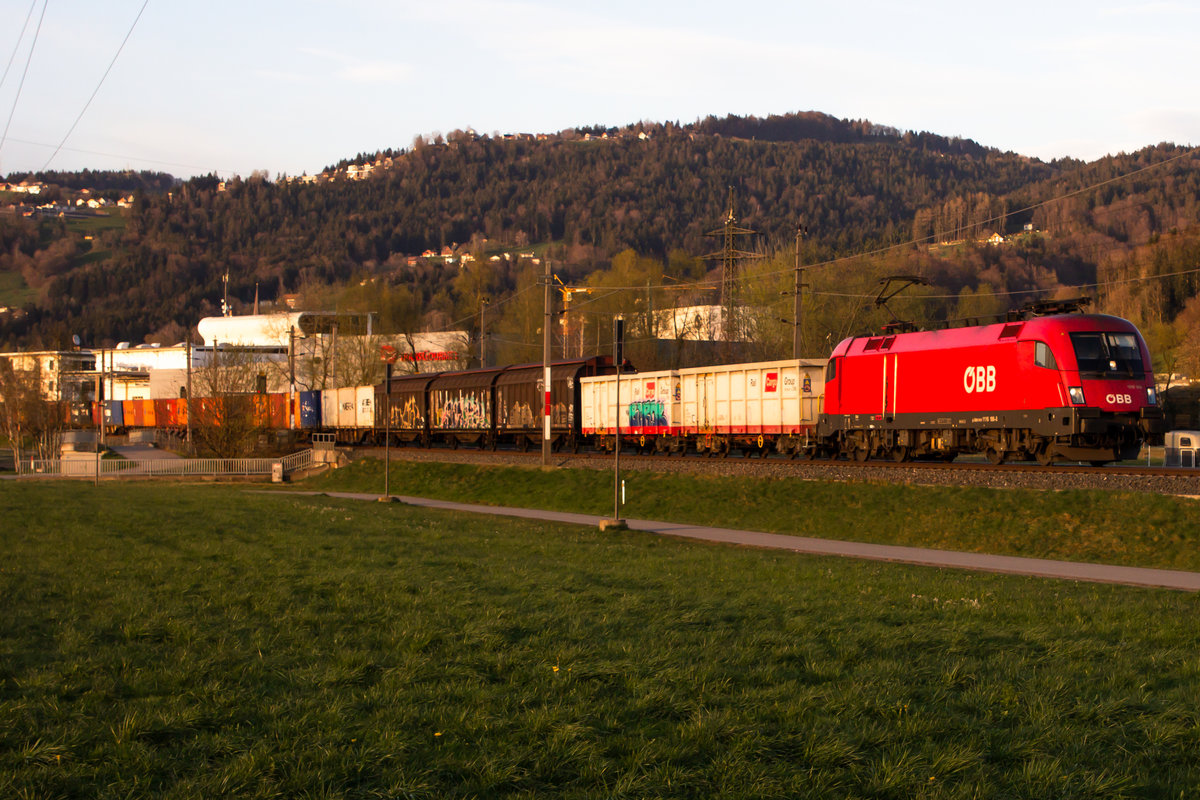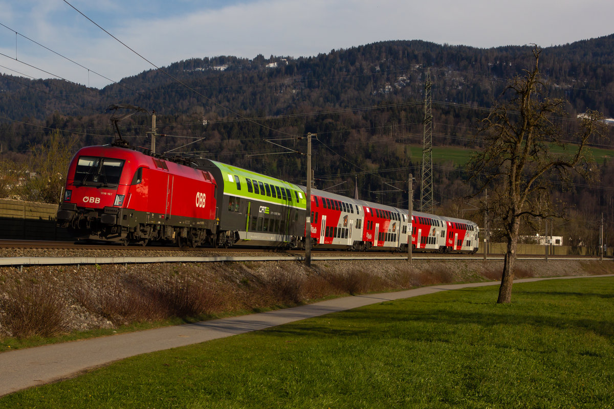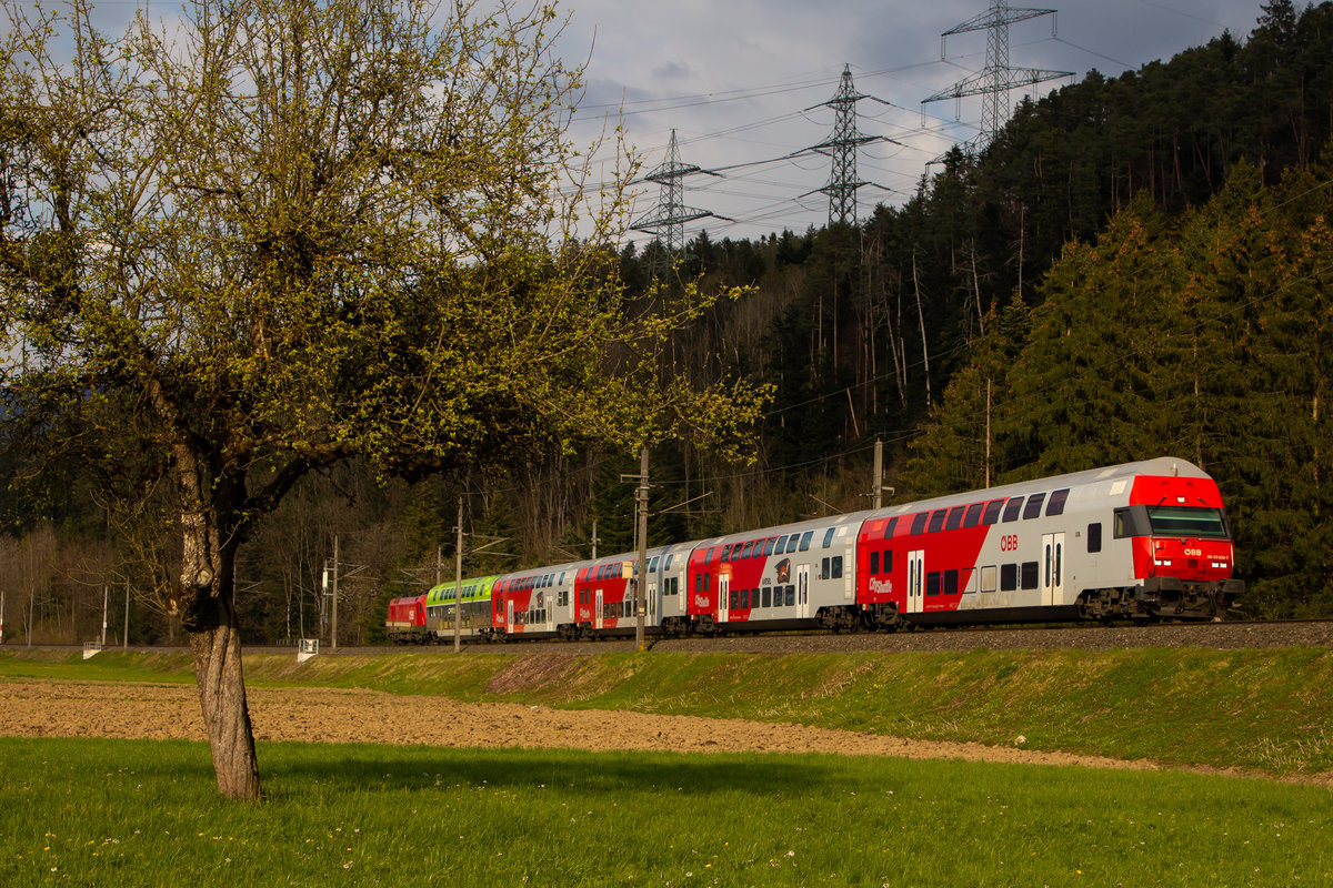 EuroCity EC 197 derzeit auf Umleitung von Feldkirch nach Bregenz aufgrund von Bauarbeiten in Lauterach/Hard. Rabe 503 013, 9.4.21 bei Schwarzach. Marvin Schenk