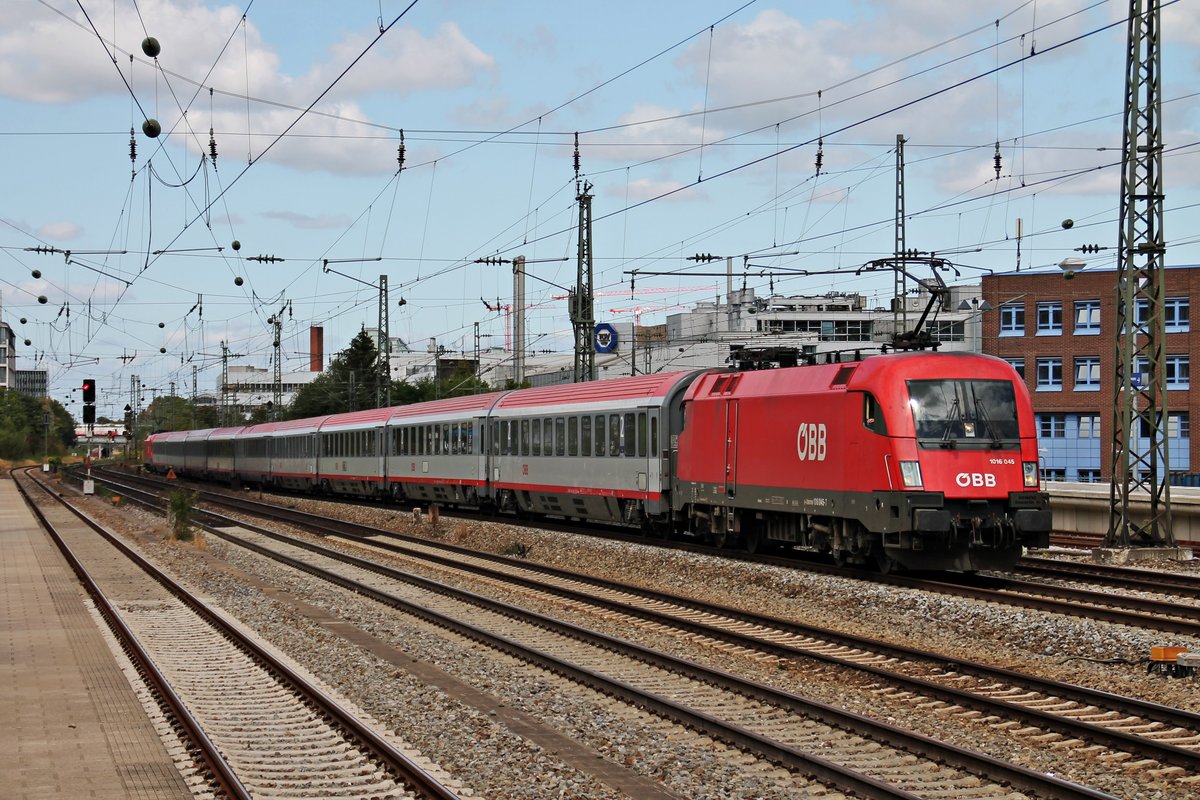 Am 25.08.2015 bespannte 1016 045 zusammen mit 1116 197, welche am Zuschluss lief, den EC 113 (Frankfurt (Main) Hbf - Klagenfurt Hbf), als sie durch München Heimeranplatz in Richtung Ostbahnhof fuhren. Tobias Schmidt