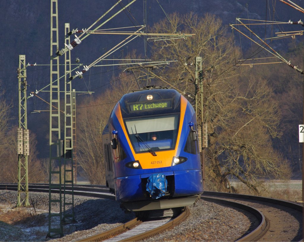 Seit dem 12. Dezember 2009 fährt die R7 manchmal auch nur bis Eschwege um dort einen längeren Aufenthalt vor der Weiterfahrt einzulegen. Aufgenommen am 05.03.2010 bei Albungen. Jens Baumhauer