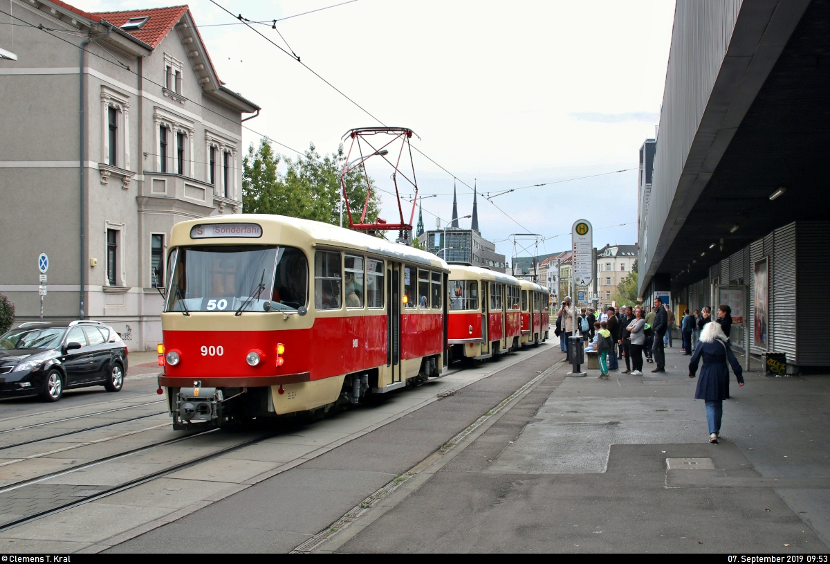 Anlässlich ihrer 50-jährigen Betriebszugehörigkeit im halleschen Straßenbahnnetz veranstalten die Halleschen Straßenbahnfreunde e.V. (HSF) gemeinsam mit der Halleschen Verkehrs-AG (HAVAG) einen rund zweistündigen Fahrzeugkorso mit allen vorhandenen Tatrawagen und deren Umbauten im Stadtgebiet von Halle.