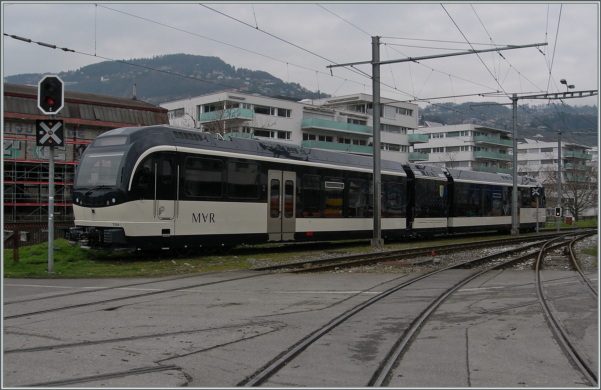 In textlicher Anlehnng an ein vor genau 10 Jahren eingestelltes Bild: Der Frühling lässt auf sich warten nicht aber die neuen Stadler CEV MVR SURF "Série Unifiée pour Réseau Ferré métrique" GTW ABeh 2/6; hier der ABeh 2/4 7504 "Vevey" in Vevey am 29. Feb. 2016 Stefan Wohlfahrt