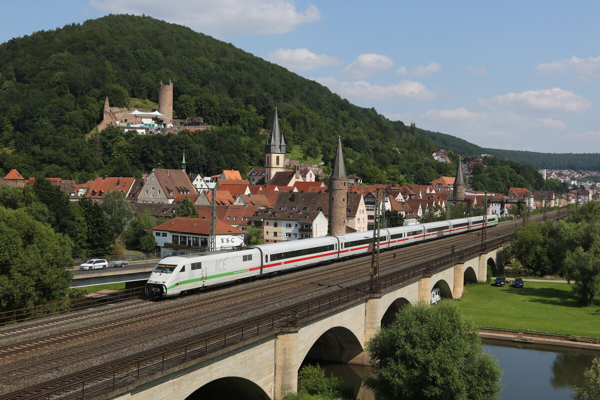Aufgrund der Sperrung der Schnellfahrstrecke Göttingen - Kassel werden die Züge über Eichenberg und Bebra nach Fulda umgeleitet. Am 13.06.2021 fuhr 402 034 als ICE 587 von Hamburg nach Nürnberg gerade den ehemaligen Bahnhof Eschwege West. Michael Brunsch