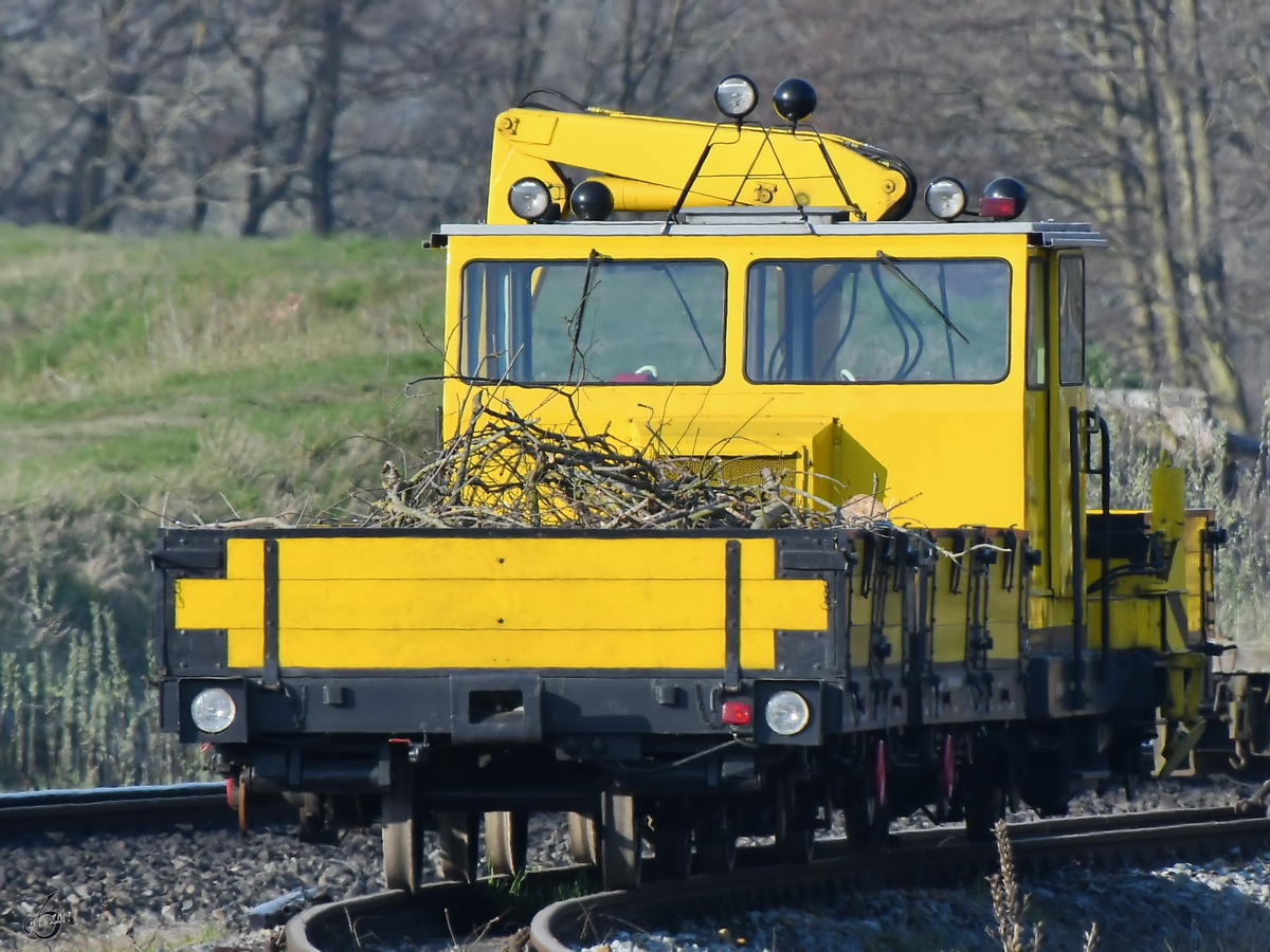 Die 1938 bei Henschel gebaute Schmalspur-Dampflokomotive 99 4802-7 wurde seiner Radsätze beraubt und stand Anfang April 2019 am Bahnhof Putbus auf einem Rollwagen. Christian Bremer