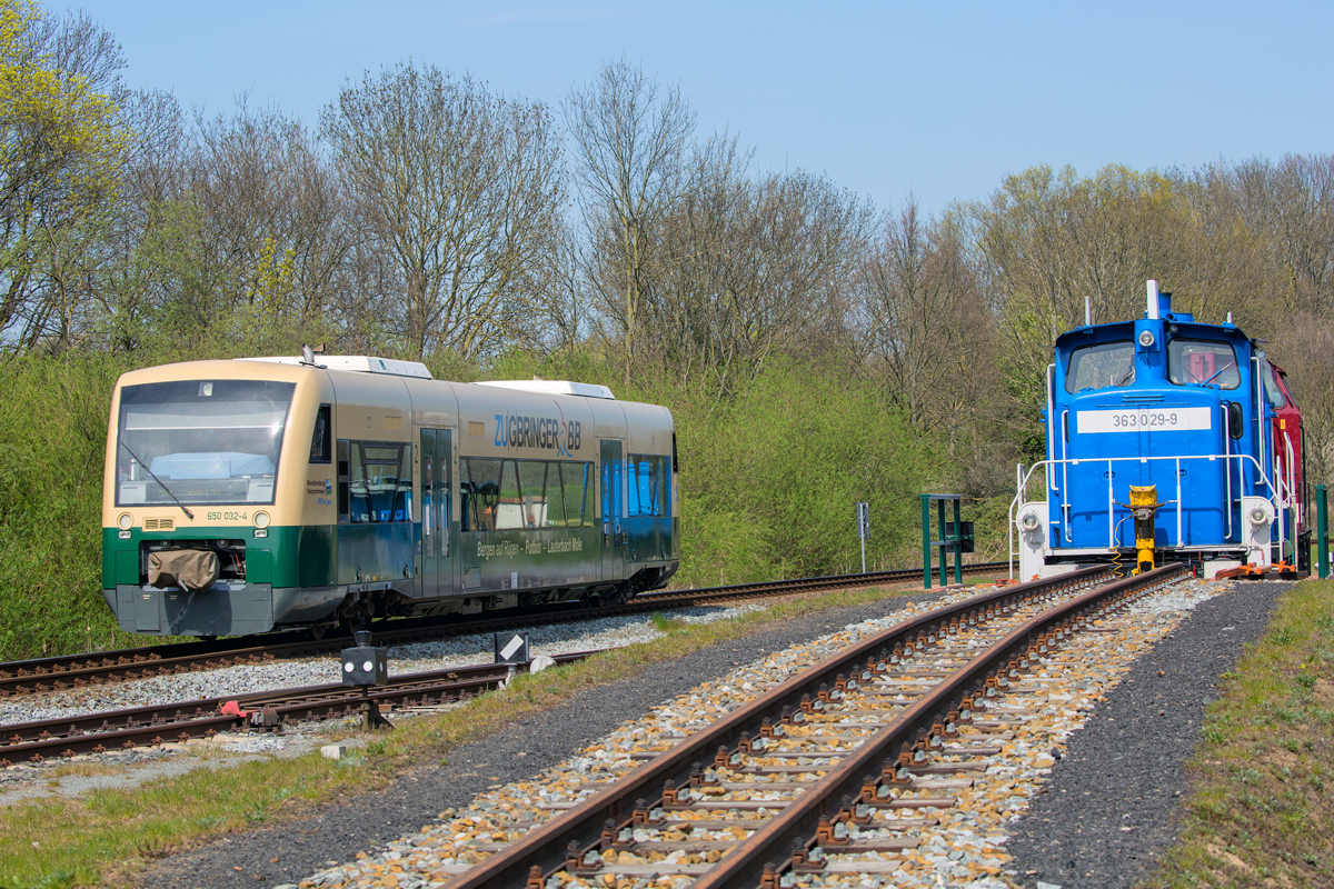 Lok 99 4632 bei Rangierarbeiten in Putbus. Bei einem fast identischem Bild vom 12.05.2018 war die komplette Loknummer mit der Kontrollziffer 8 auf dem Lokschild vorhanden. - 26.04.2019 Gerd Wiese