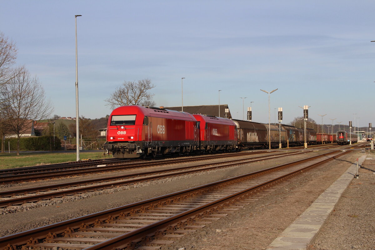 Mit knapp 1000t hatten die 2016 062 und 2016 085 mit dem DG44352 von Szentgotthard nach Graz Vbf nicht so viel zu tun als die beiden knapp 2500PS starken Loks aus dem Bahnhof Fehring beschleunigen und der Abendsonne des 7.4.2022 entgegenfahren. Max Kiegerl