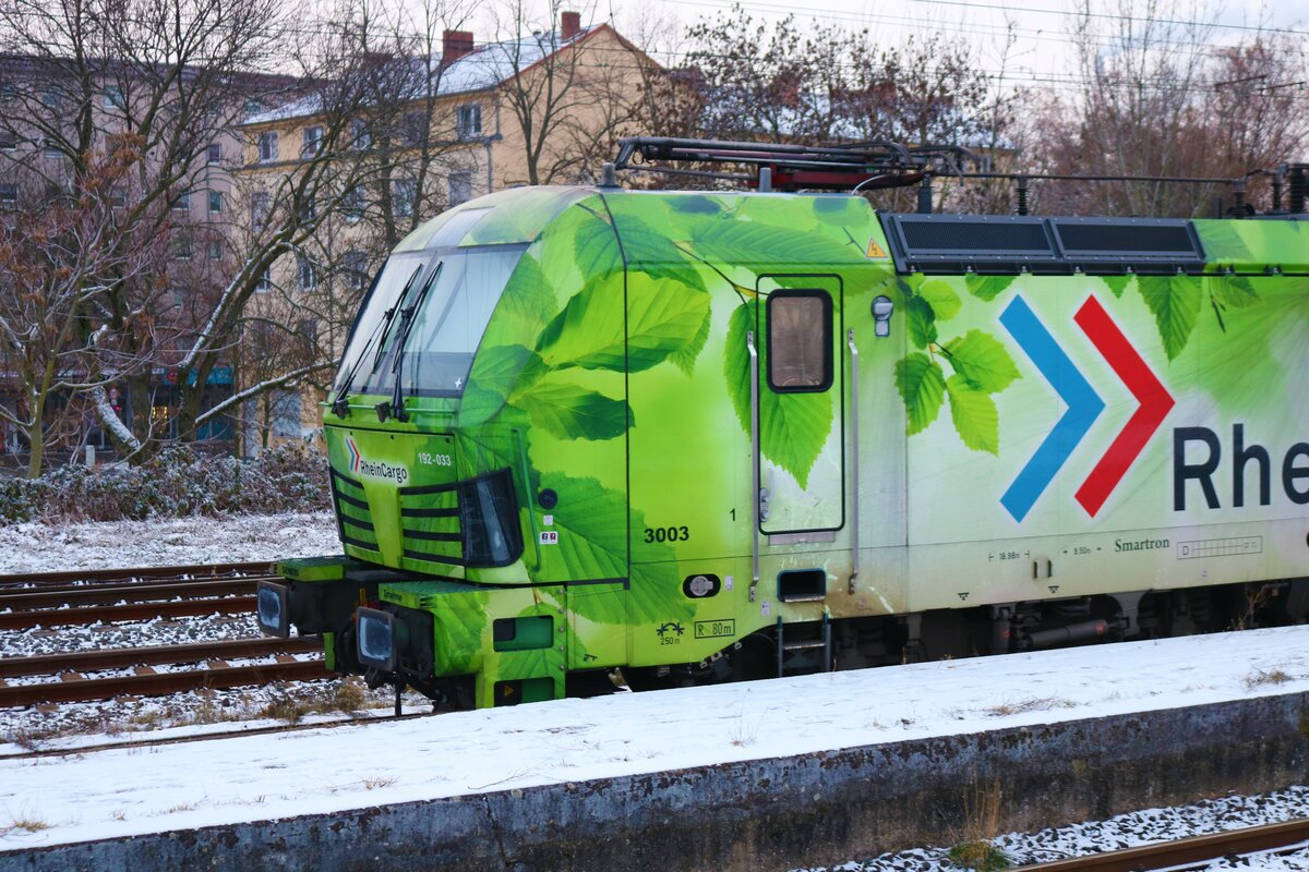 RheinCargo GmbH & Co. KG, Neuss [D] mit ihrer Smartron "192 045" [NVR-Nummer: 91 80 6192 045-3 D-RHC] und einem Kesselwagenzug (Benzin) am 20.03.23 Durchfahrt Bahnhof Flughafen BER Terminal 5 Lothar Stöckmann
