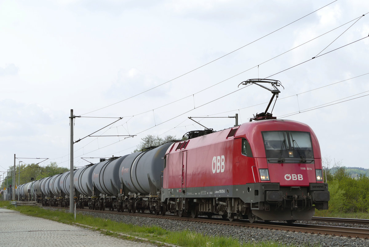 16. Oktober 2018, die ÖBB-Lok 1116 104 fährt mit einem Güterzug in Richtung Saalfeld durch Küps. Sicher weiß jemand, was in diesen Spezialwaggons der Captrain transportiert wird. --- Wusste ich doch, dass es jemand wusste: Gattung Shimmns für den Transport von Aluminiumcoils. Danke für die Info. Jürgen Krause