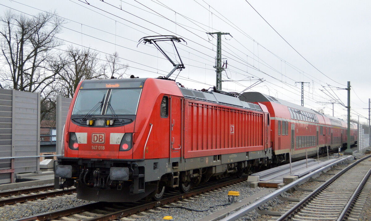 DB Regio Nordost [D] mit "147 018" [NVR-Nummer: 91 80 6147 018-6 D-DB] als Schublok des RE3 Richtung Berlin am 15.12.21 Berlin Karow. Lothar Stöckmann