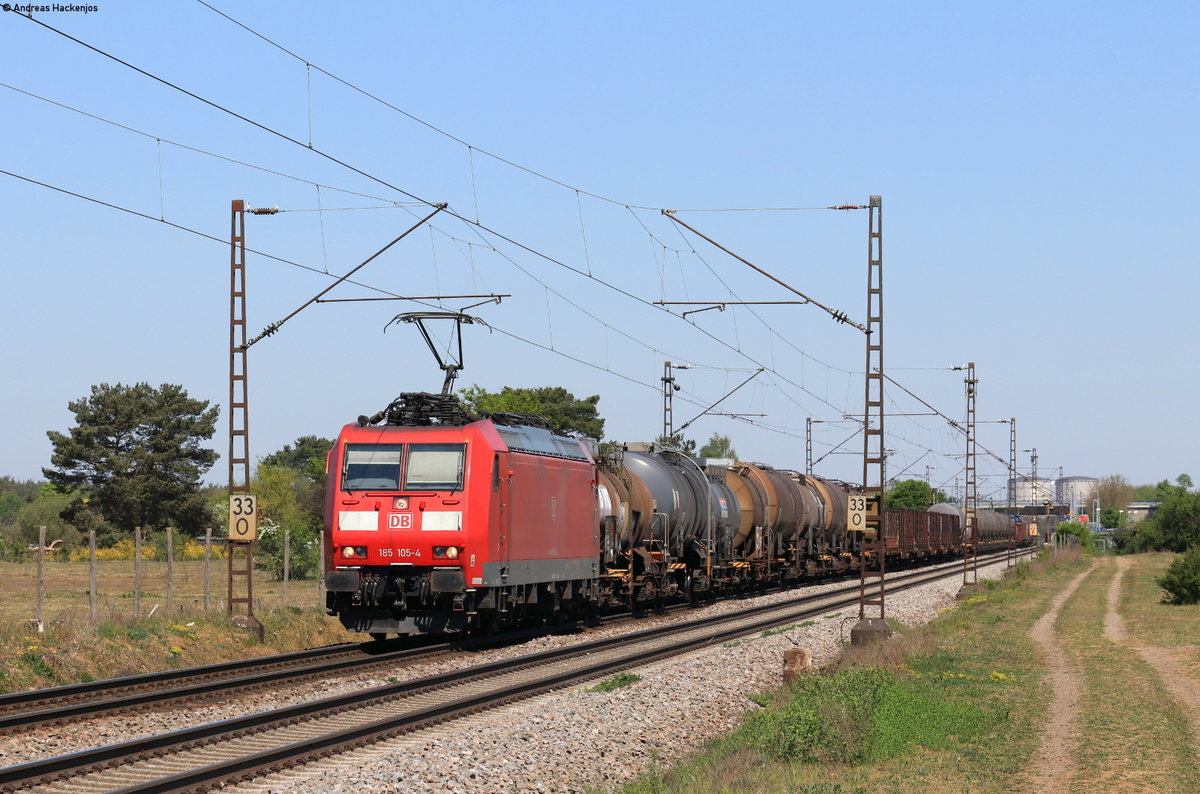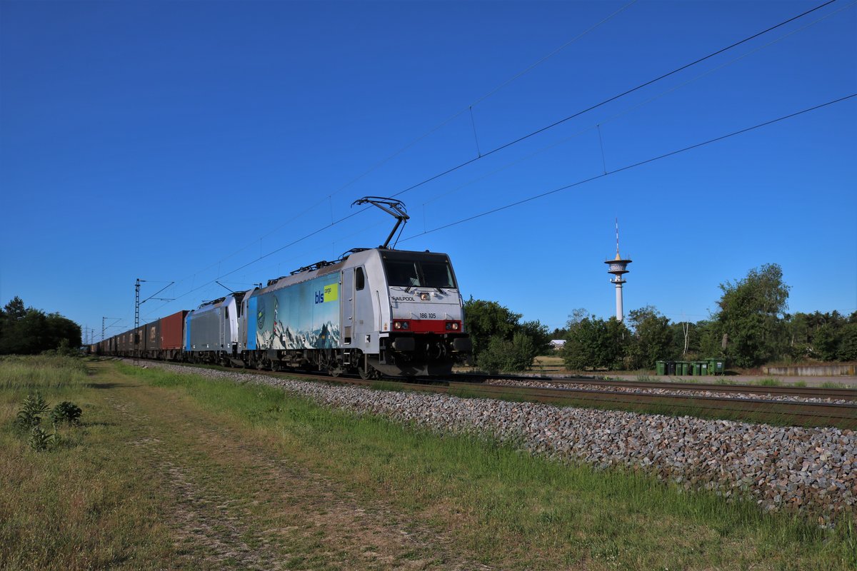 185 148-4 und 185 005-6 mit dem EZ 51995 (Mannheim Rbf-Kornwestheim Rbf) bei Waghäusel 22.4.20