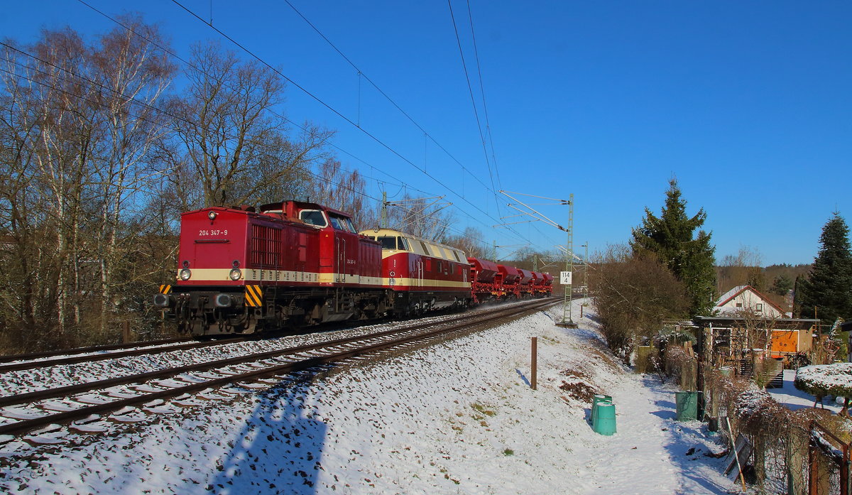 "V100-BUG-03" (92 80 1202 520-3 D-BUG) mit einem Güterzug Drehgestell-Flachwagen mit Sand am 04.02.20 Bf. Flughafen Berlin Schönefeld. Lothar Stöckmann