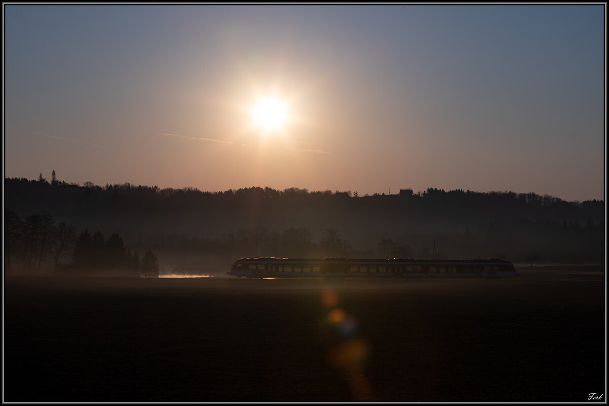 Regen hat den 15.Februar 2022 beherrscht. Am Morgen des 16.02.2022 kämpft sich die Sonne durch den entstandenen Nebel. 5063._ _ bei Pölfing Brunn.