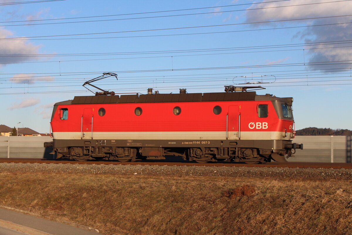 Am 21.1.2022 präsentiert sich die 1144 097 im besten Abendlicht in Kalsdorf beim warten auf ihre nächste Leistung.