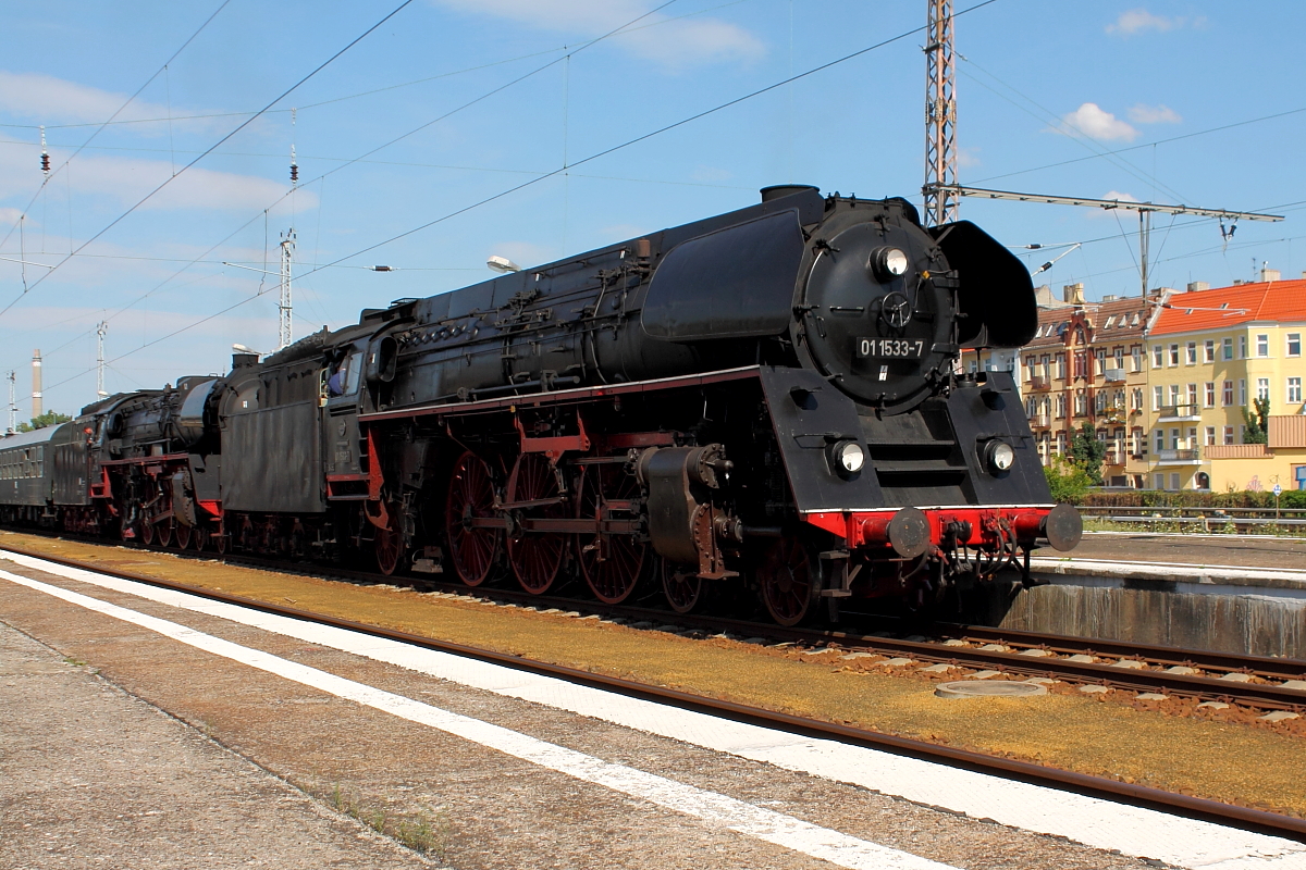 Am 31.07.2015 begann die Dampfsonderfahrt der großen Deutschlandrundfahrt von Eisenbahnromantik in Nürnberg. Am ersten Tag ging die Reise von Nürnberg nach Dresden. Hier passieren die 01 1533-7 und 01 150 mit dem DPE 20321 Zwickau-Pölbitz. Matthias Hartmann