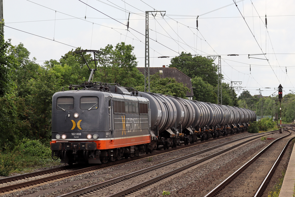 Hector Rail (Germany) GmbH, Bochum ihrer "162.002", Name: "Lang" (NVR: "91 80 6151 070-0 D-HRDE") und einem Kesselwagenzug am 25.06.24 Höhe Bahnhof Magdeburg-Neustadt. Lothar Stöckmann