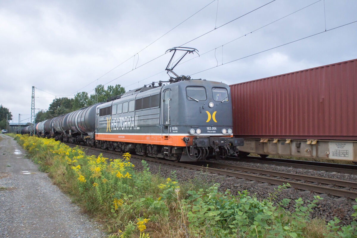 Hectorrail 162 003 mit Kesselzug von Coswig (bei Dresden) nach Hamburg Hohe Schaar als 95196 bei Hämelerwald.