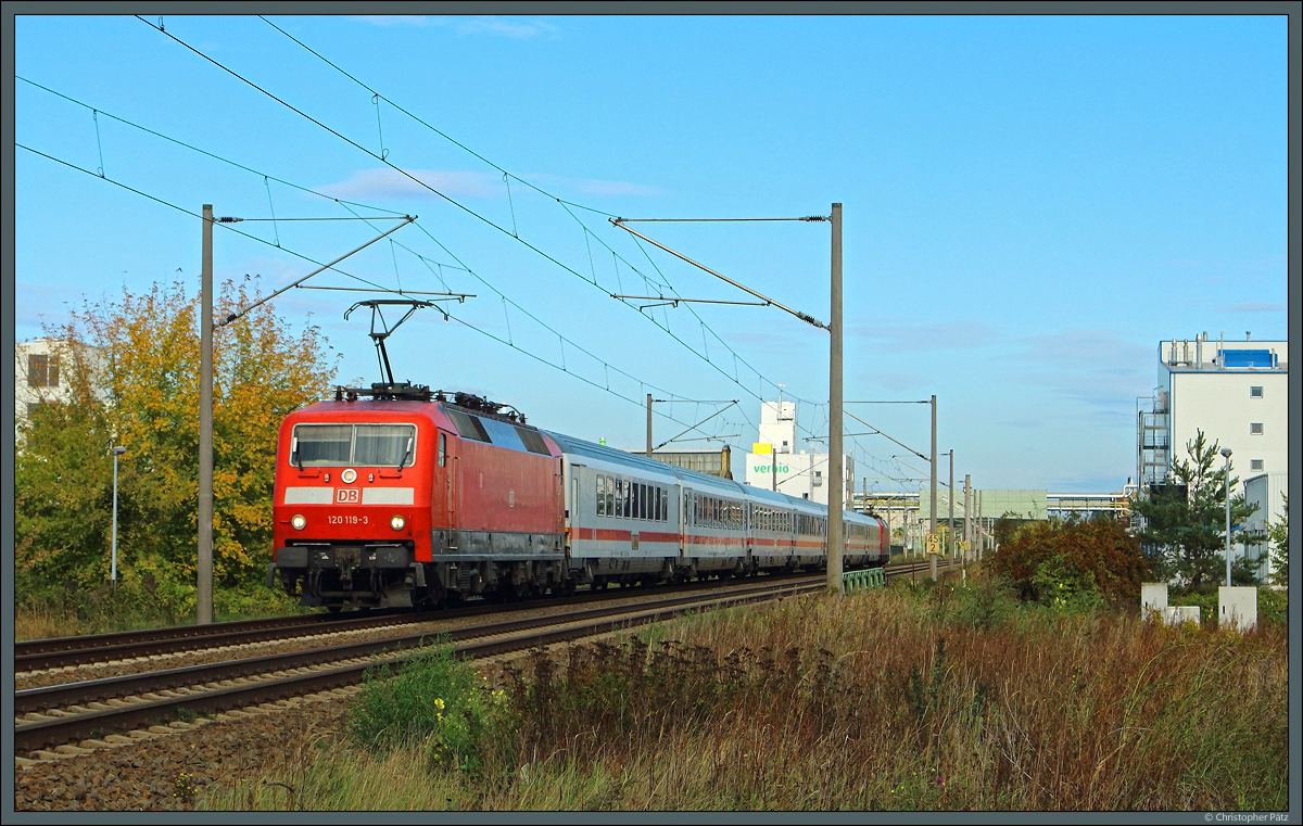 DBpbzfa 668.2 mit Schublok 146 559-0 DB als verspäteter IC 2039 (Linie 56) von Norddeich Mole nach Leipzig Hbf durchfährt den Hp Dessau Süd auf der Bahnstrecke Trebnitz–Leipzig (KBS 251).