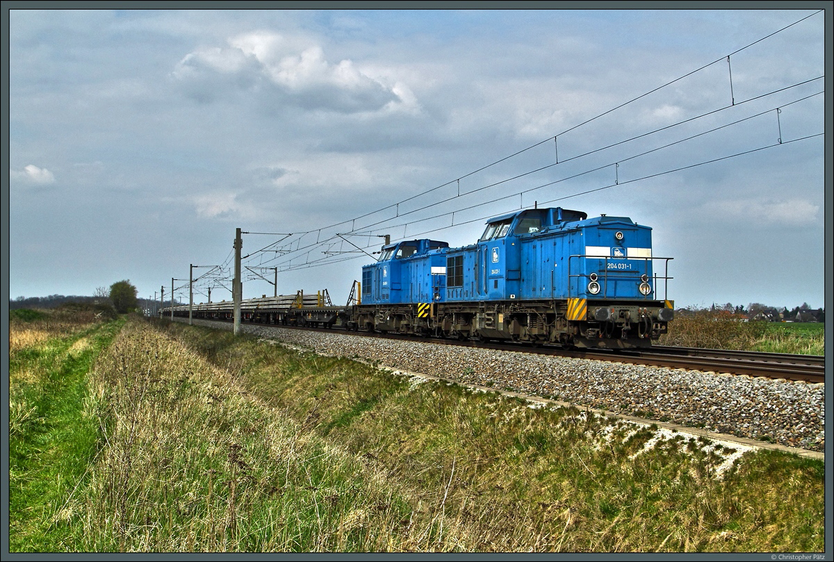 Containerzug mit 140 810-3 (140 041-5) der Eisenbahn-Bau- und Betriebsgesellschaft Pressnitztalbahn mbH (PRESS) durchfährt den Hp Dessau Süd auf der Bahnstrecke Trebnitz–Leipzig (KBS 251) Richtung Dessau Hbf.