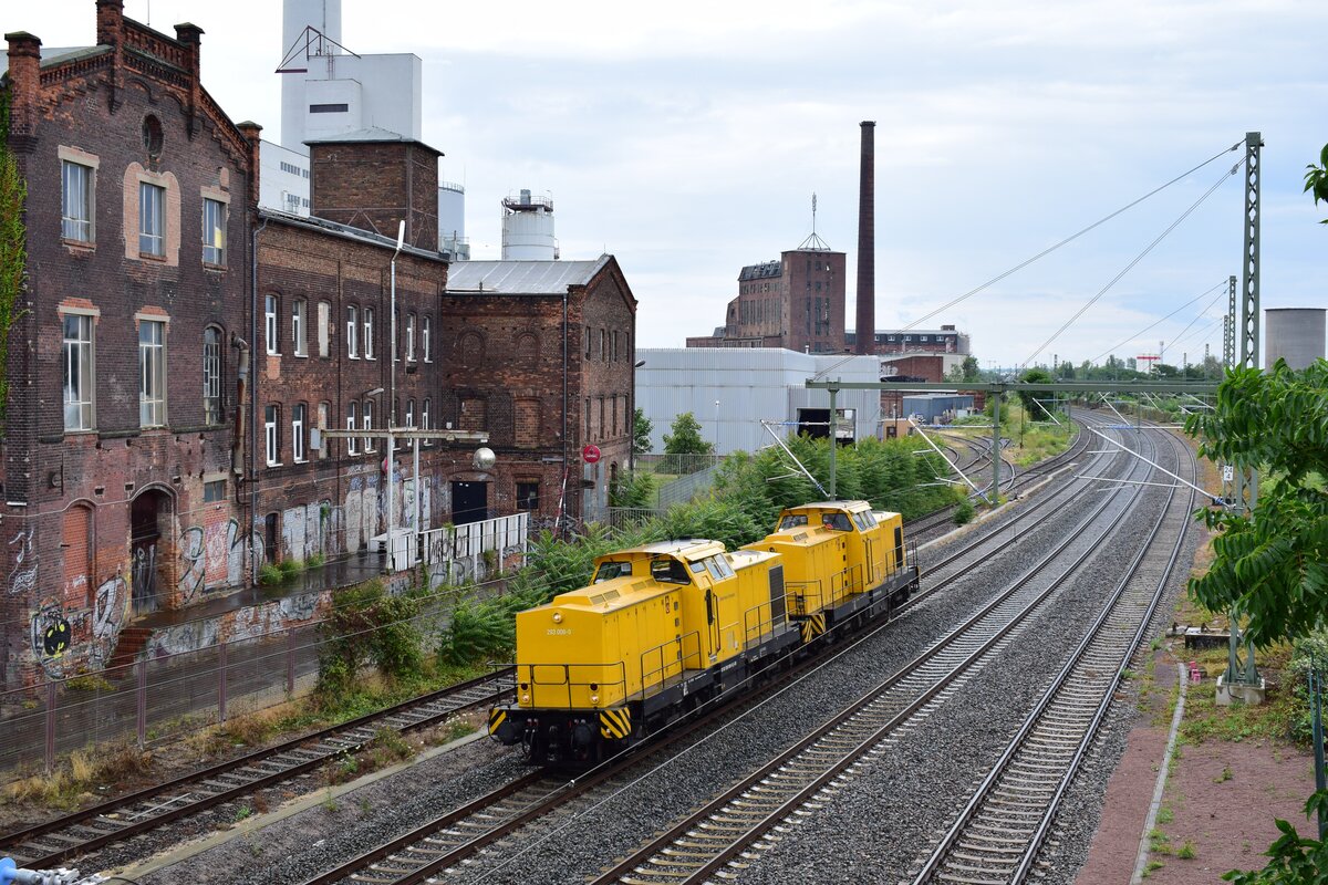 Vom Räucherturm in Dessau hat man einen tollen Blick über die Gleisanlagen in Dessau. Am 29.07.2018 kam 110 491 mit 2 Reisezugwagen aus Berlin Lichtenberg durch Dessau gefahren auf ihren Weg nach Delitzsch.