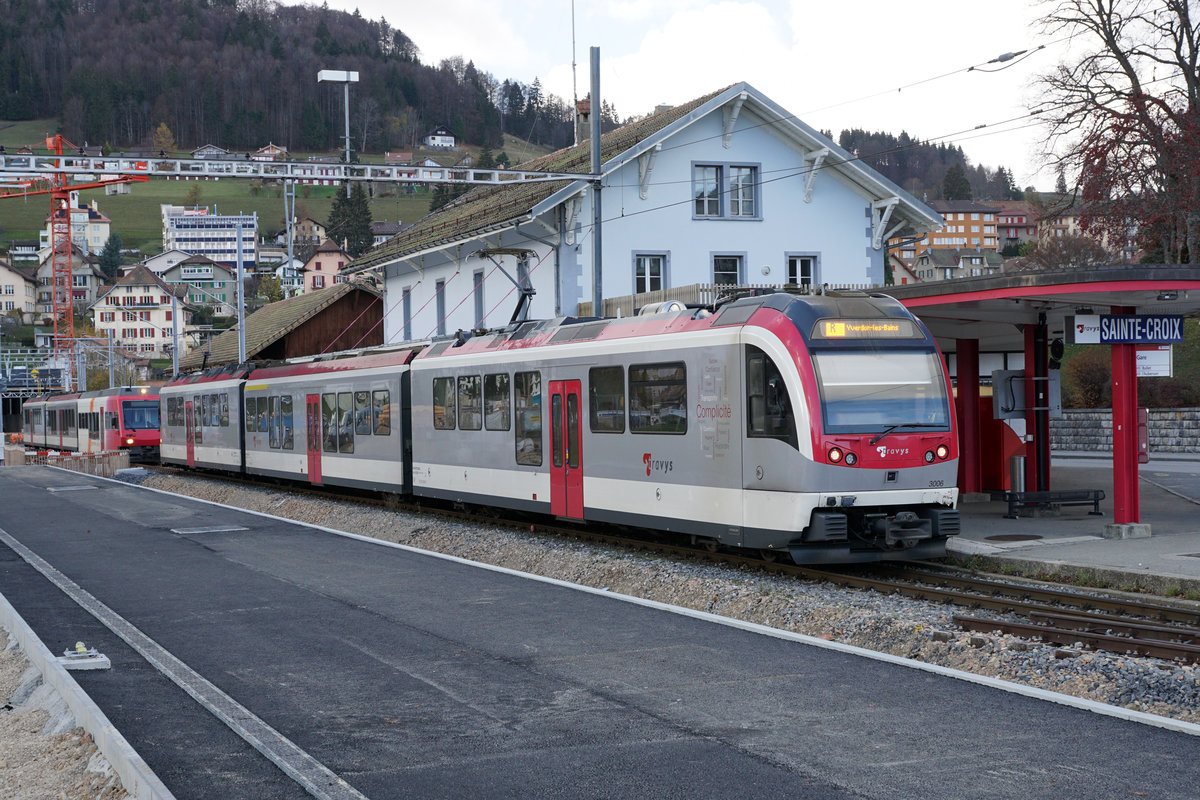 Am 7. Mai 2021 schickte TRAVYS den BDe 4/4 5 der ehemaligen Yverdon-Ste-Croix Bahn (YSC) zusammen mit dem Salonwagen Ars 96 85 8270 036-3 „La Traverse“ auf seine letzte Reise. Die letzte Fahrt Yverdon-les Bains - Ste-Croix retour war so traurig wie das Wetter.