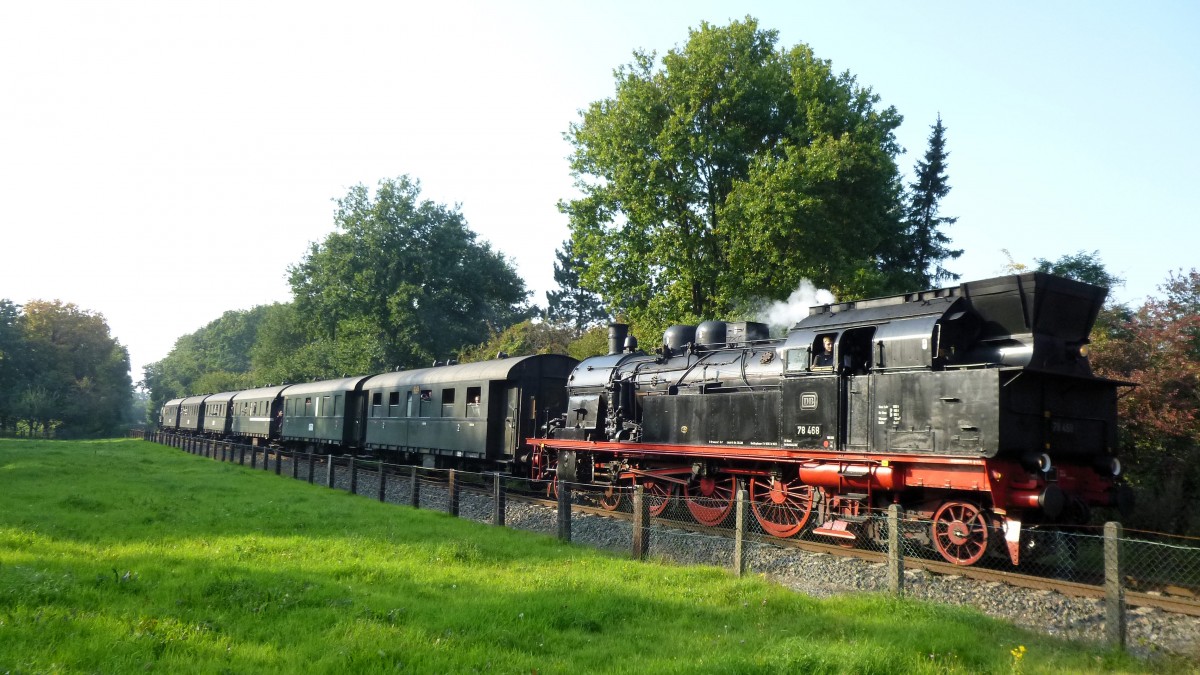 Sonderzug mit 78 468 zum 140-jährigen Streckenjubiläum der Euregiobahn Münster-Gronau-Enschede kurz nach der Abfahrt aus dem Bahnhof Metelen Land Uwe Hilder