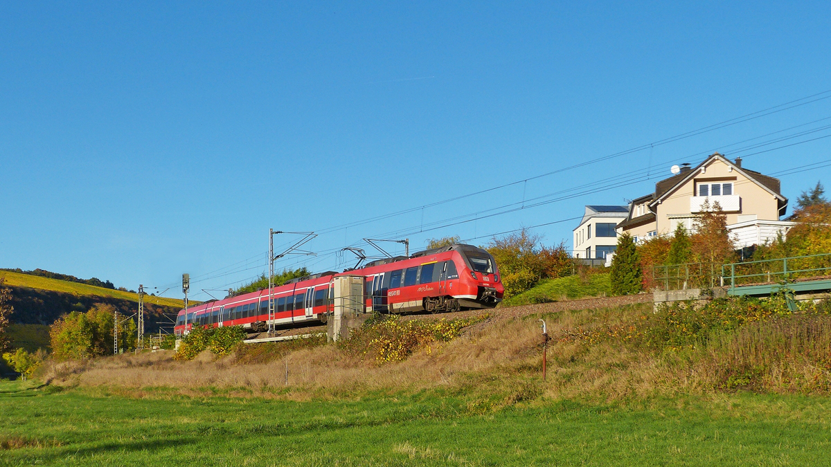 . Herbst an der Obermoselstrecke - In Wehr (Mosel) konnte am 31.10.2016 der vierteilige Hamster „Neef“ bildlich festgehalten werden. Der Zug fuhr auf der Obermoselsstrecke die Relation Trier Hbf - Perl. (Hans) De Rond Hans und Jeanny