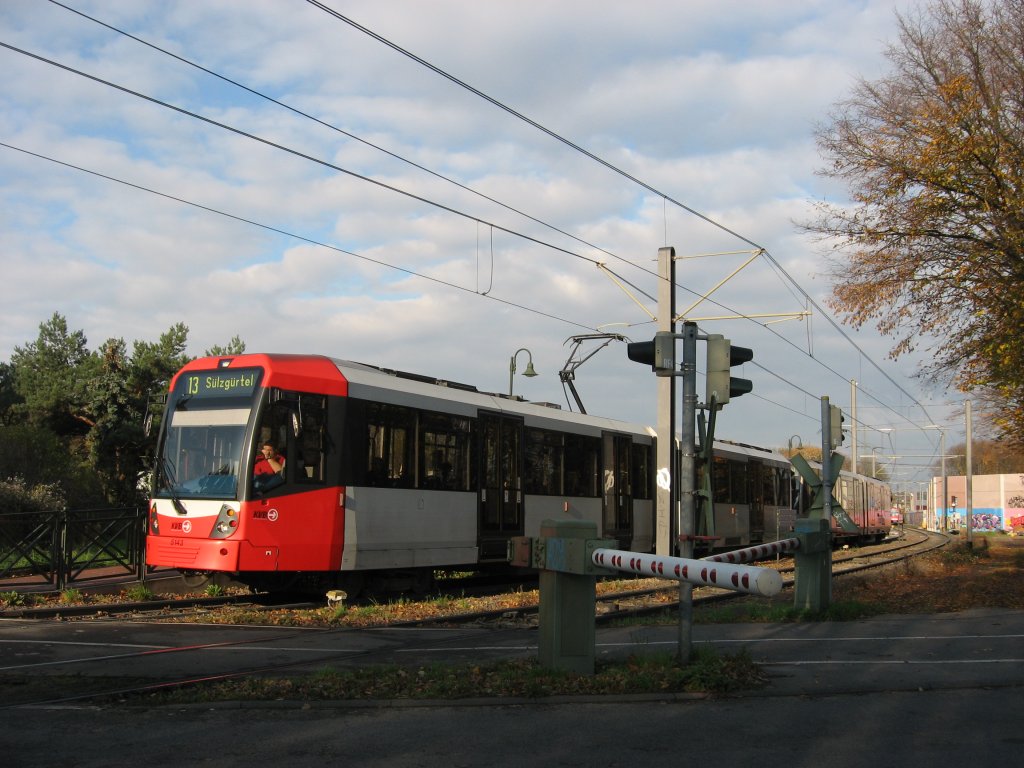 2 unbekannte Wagen aus der Serie K5100 am 08. November 2009 am BÜ Wischheimer Straße in K-Buchheim unterwegs als Linie 13 Richtung Sülzgürtel. Johannes Schwarz
